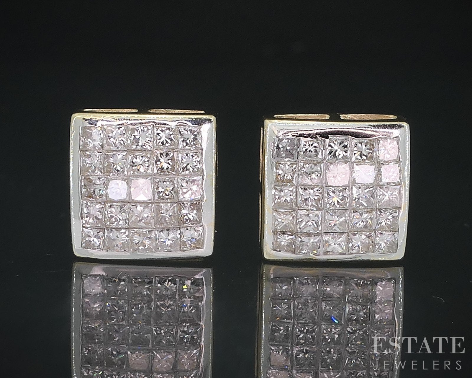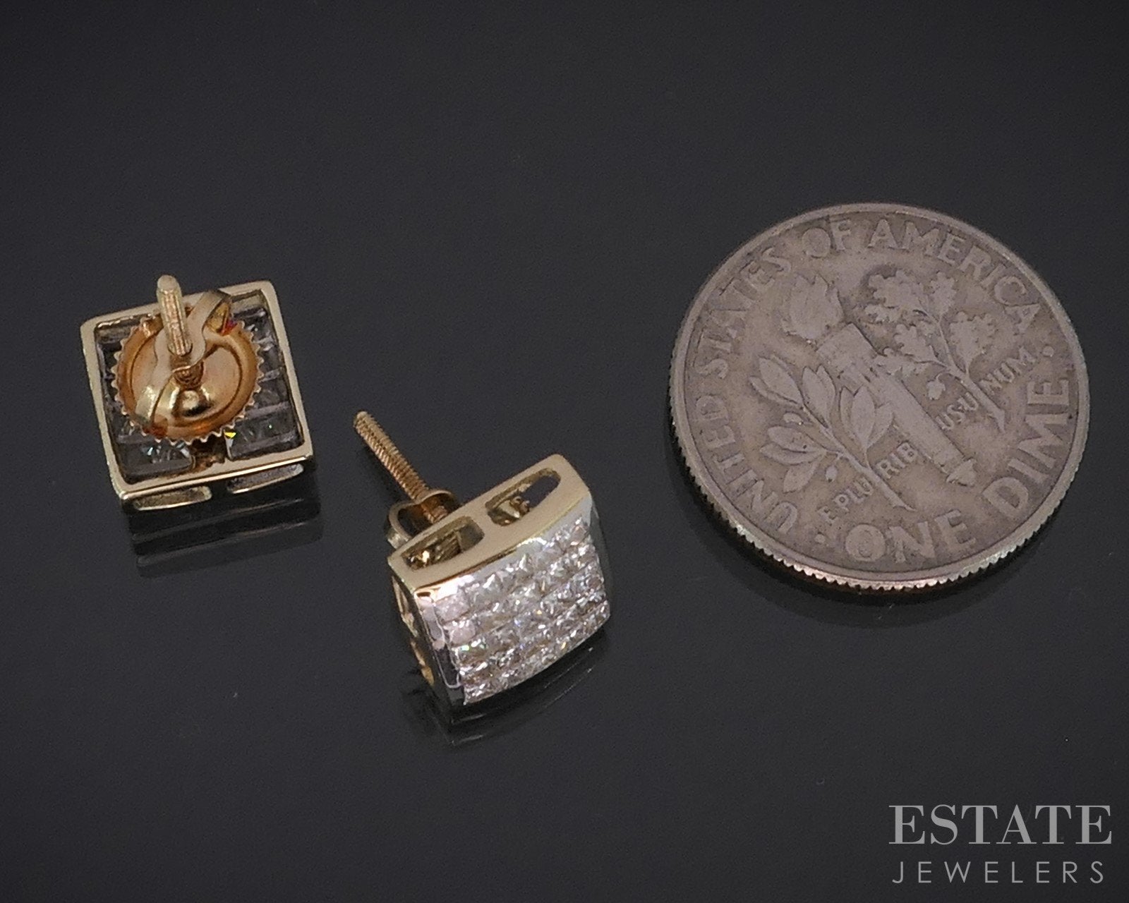 14k Yellow Gold Invisible Natural 1ctw Diamond Screw Back Earrings 2g i18597b