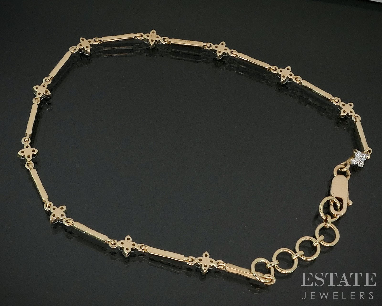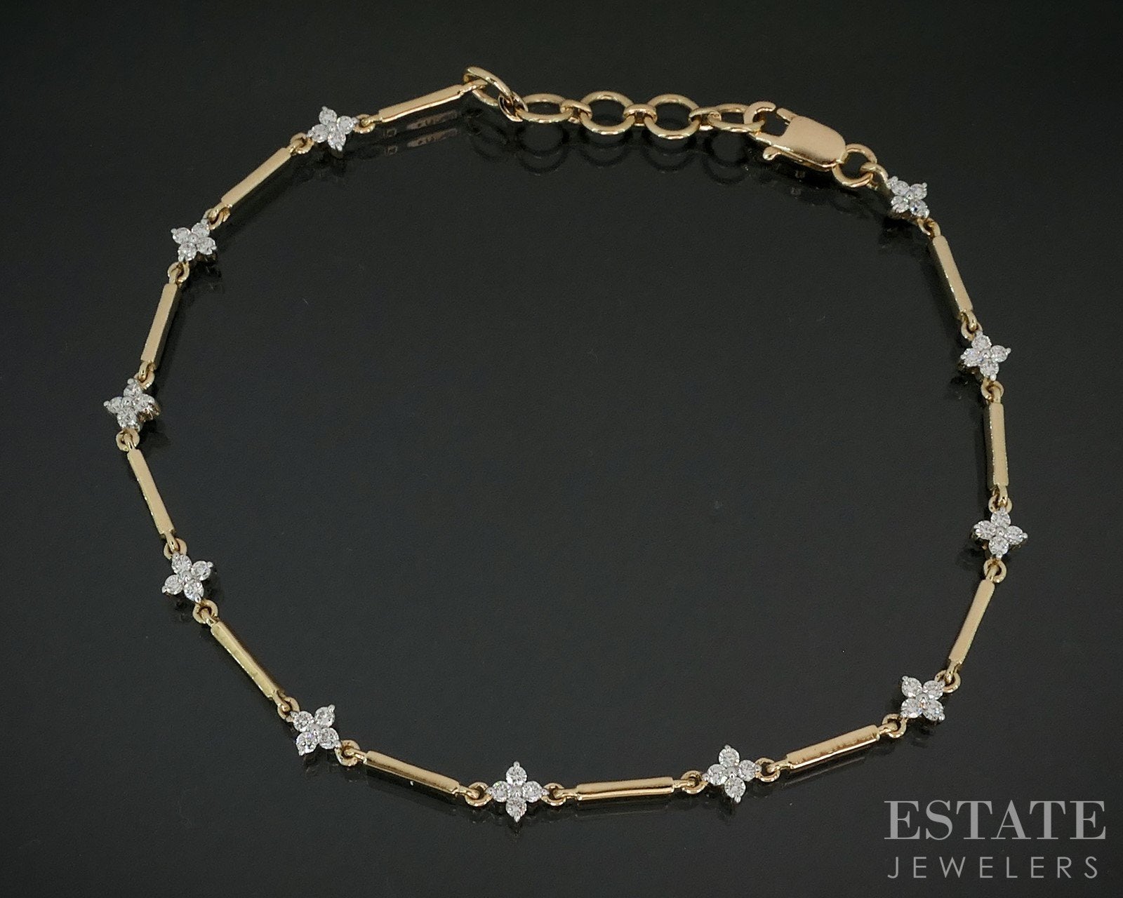 14k Yellow Gold Lab Created .56ctw Diamond Flower Station Bracelet 4.7g p79403
