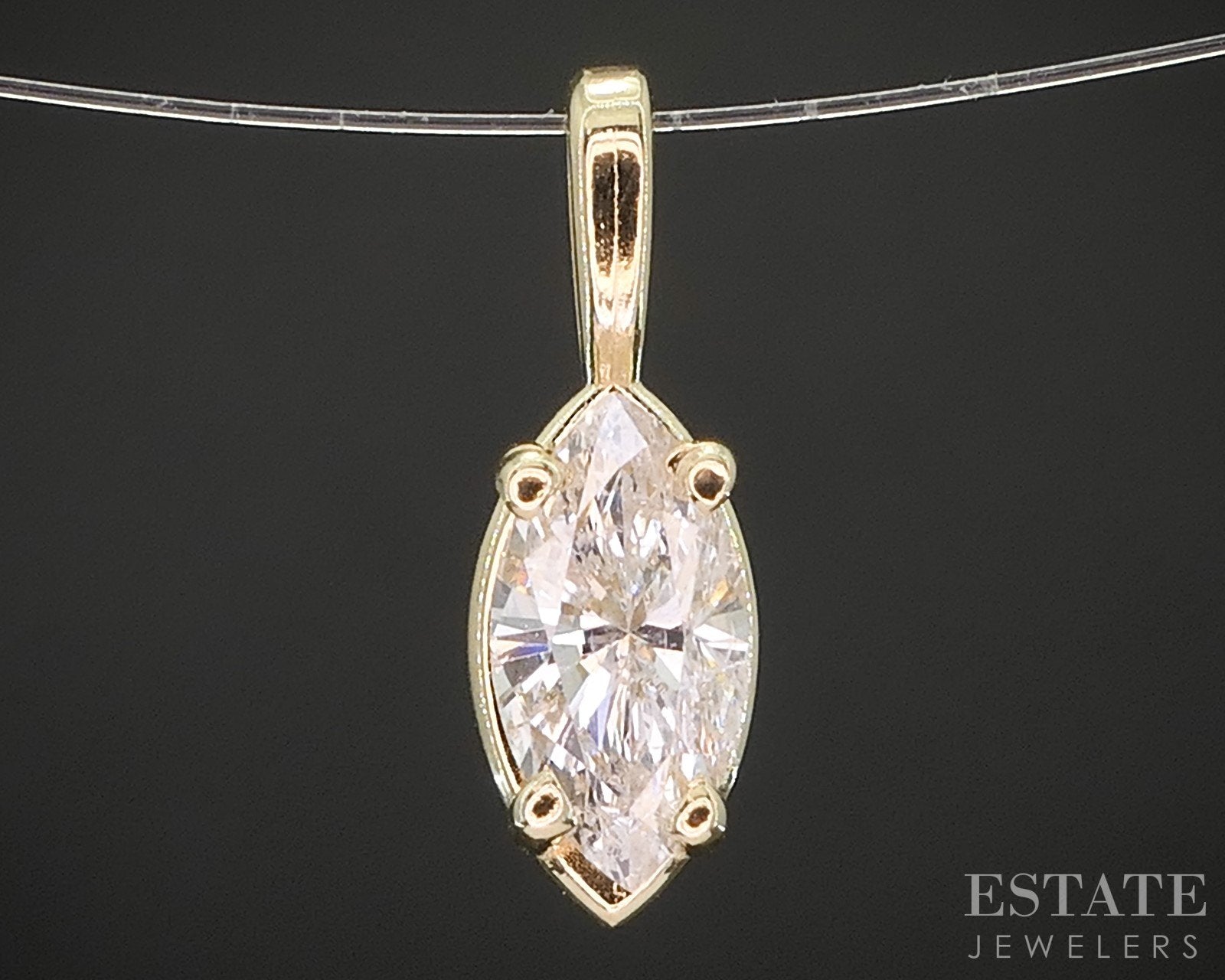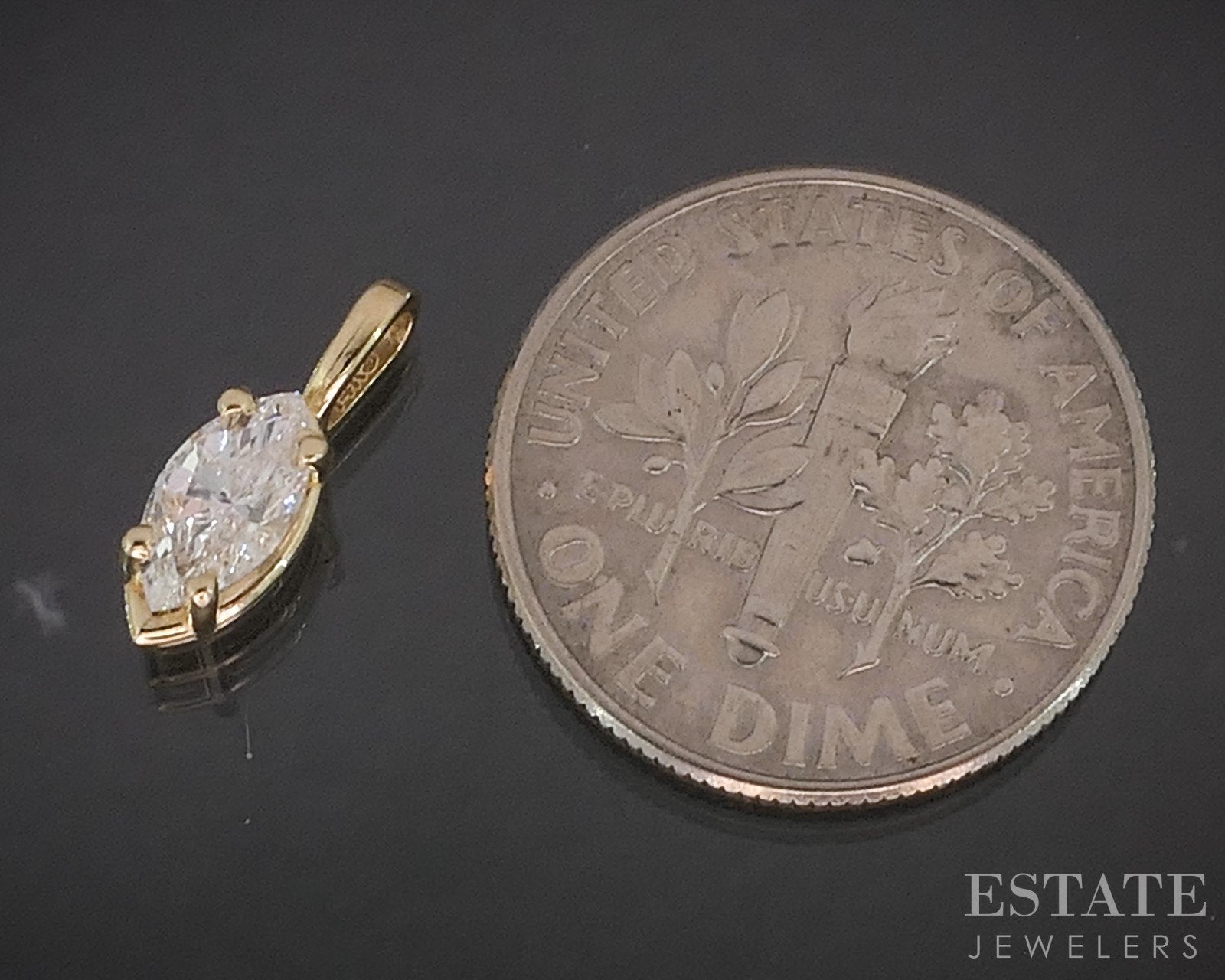 14k Yellow Gold Marquise Natural .28ct Diamond Solitaire Ladies Pendant i20345b