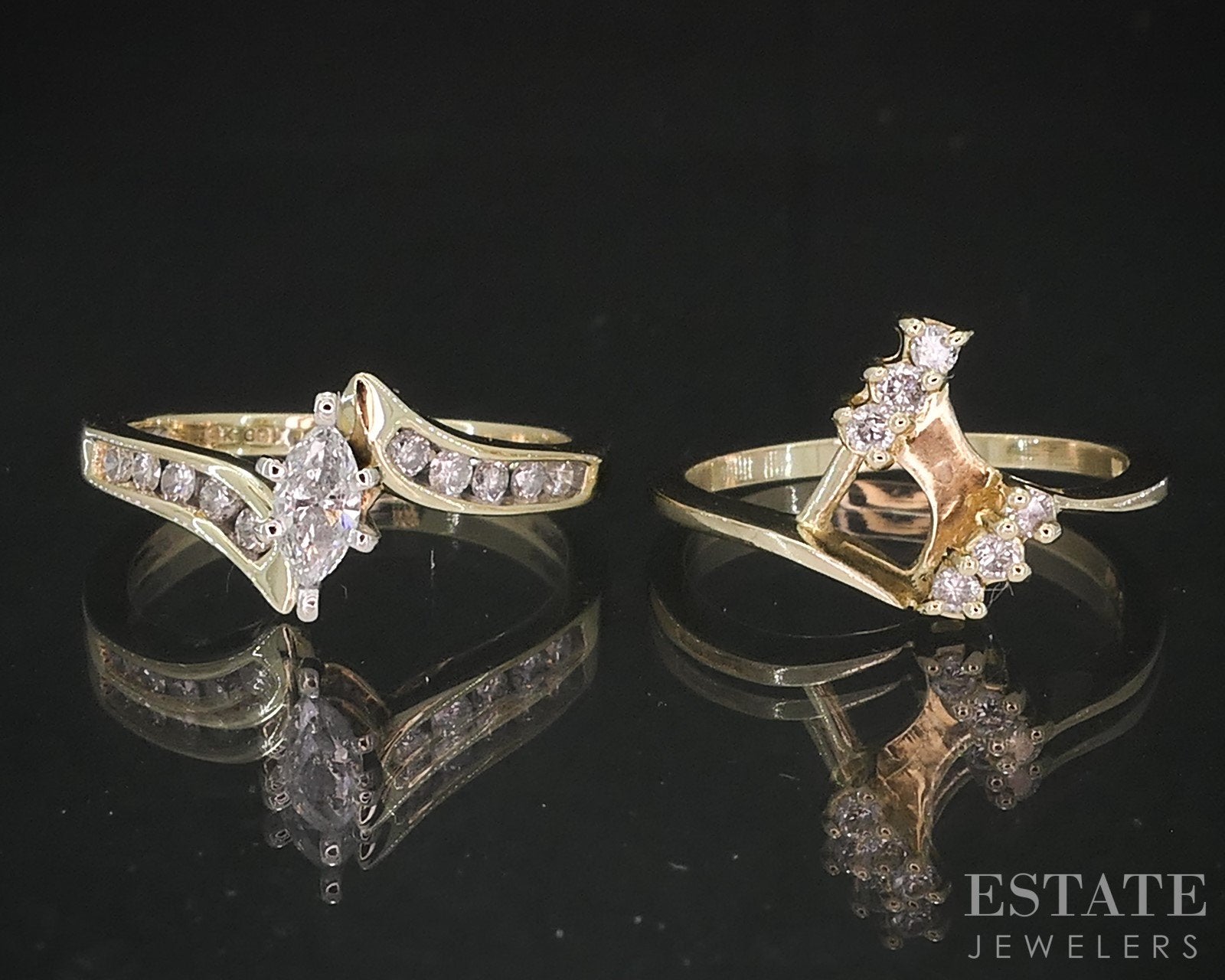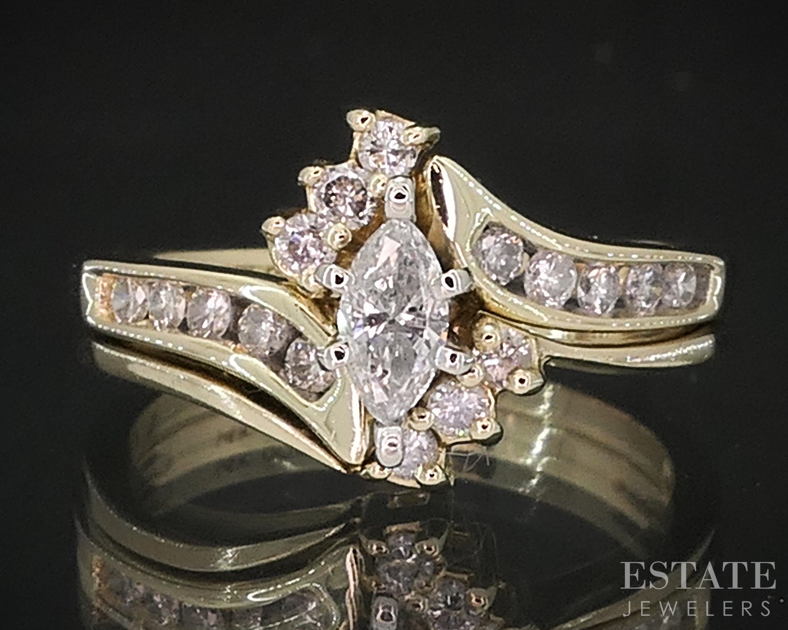 14k Yellow Gold Marquise Natural .36ctw Diamond Ladies Wedding Set 4.5g i18874
