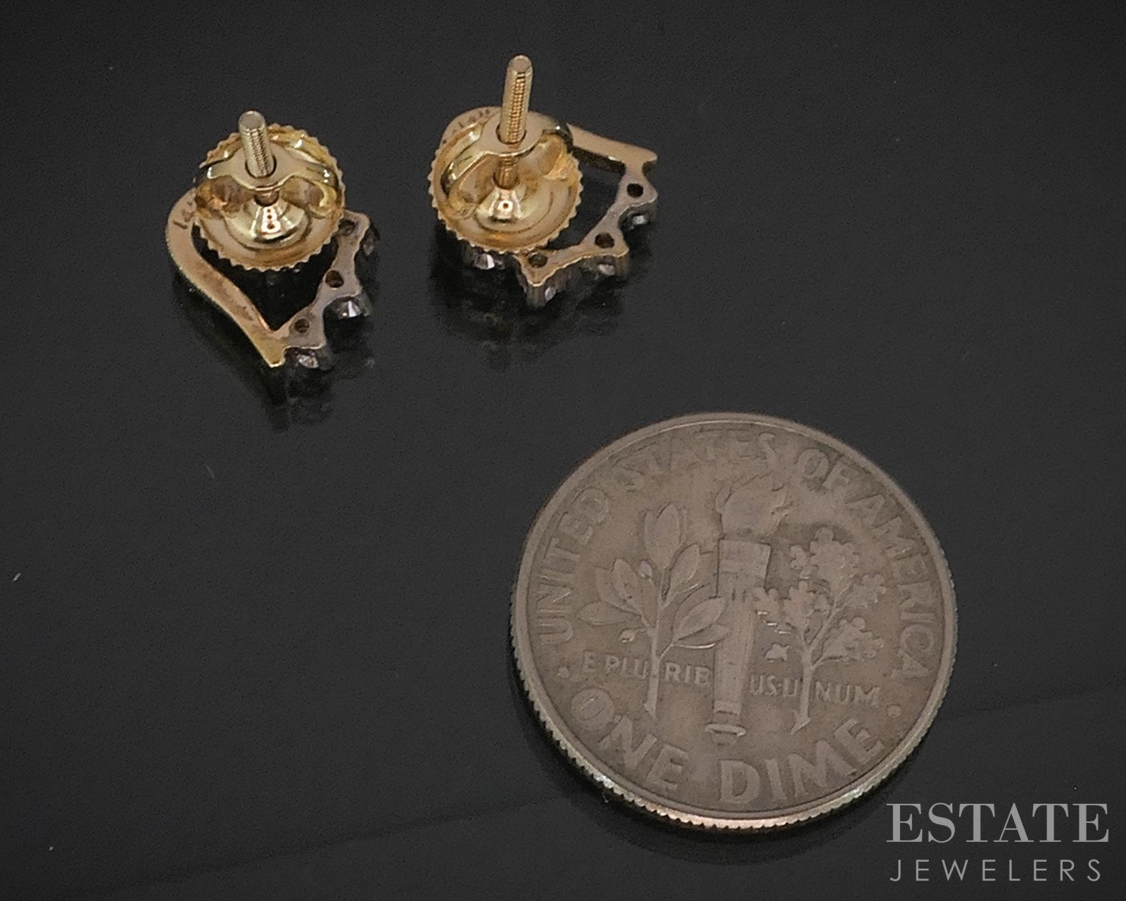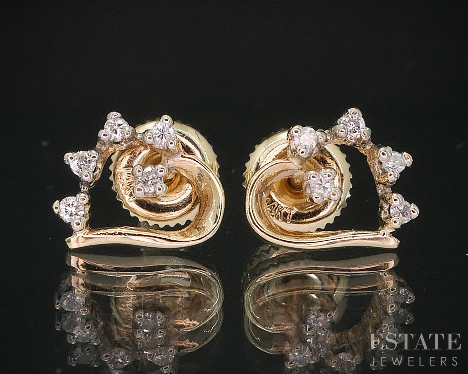 Additional Info: Sparkling ladies screw backs with round cut Diamonds set on the outside of the hearts!