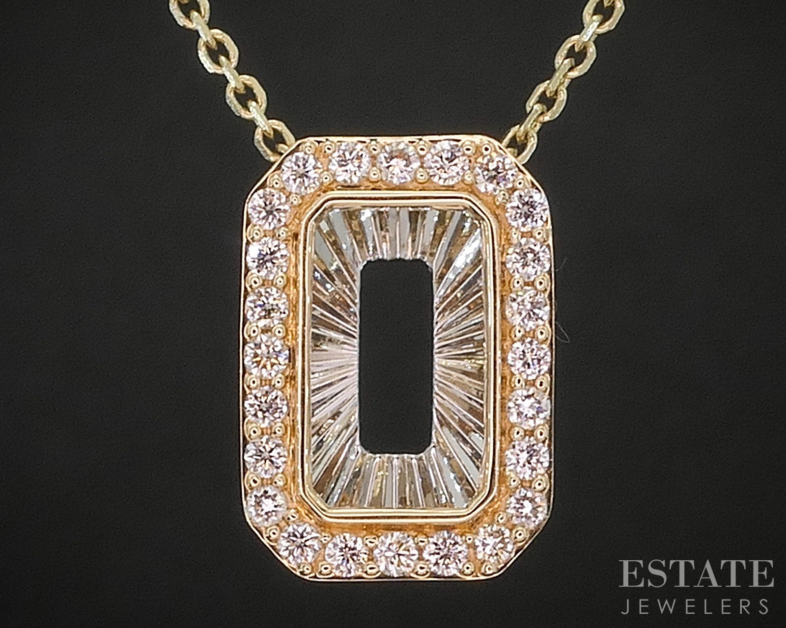 14k Yellow Gold Natural .20ctw Diamond Block O Ladies Necklace 2.9g 18"L i20123b