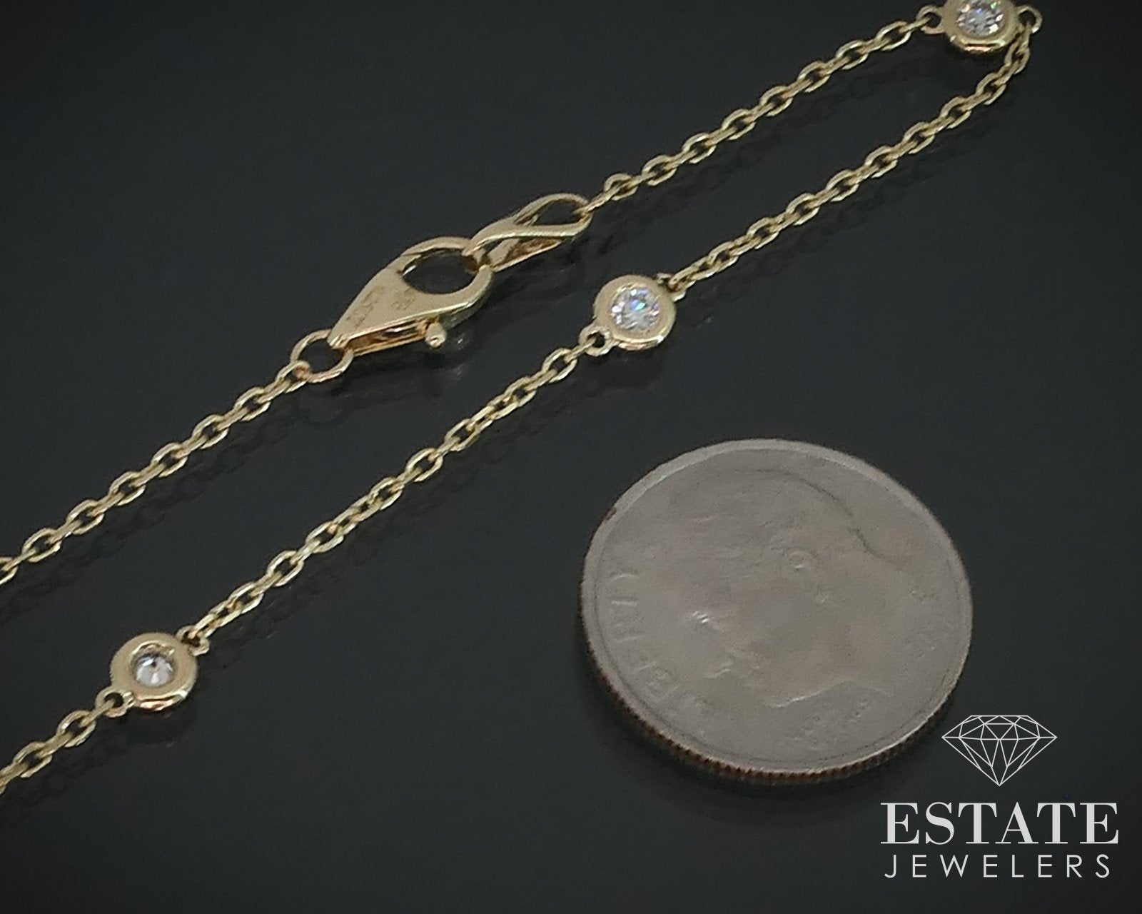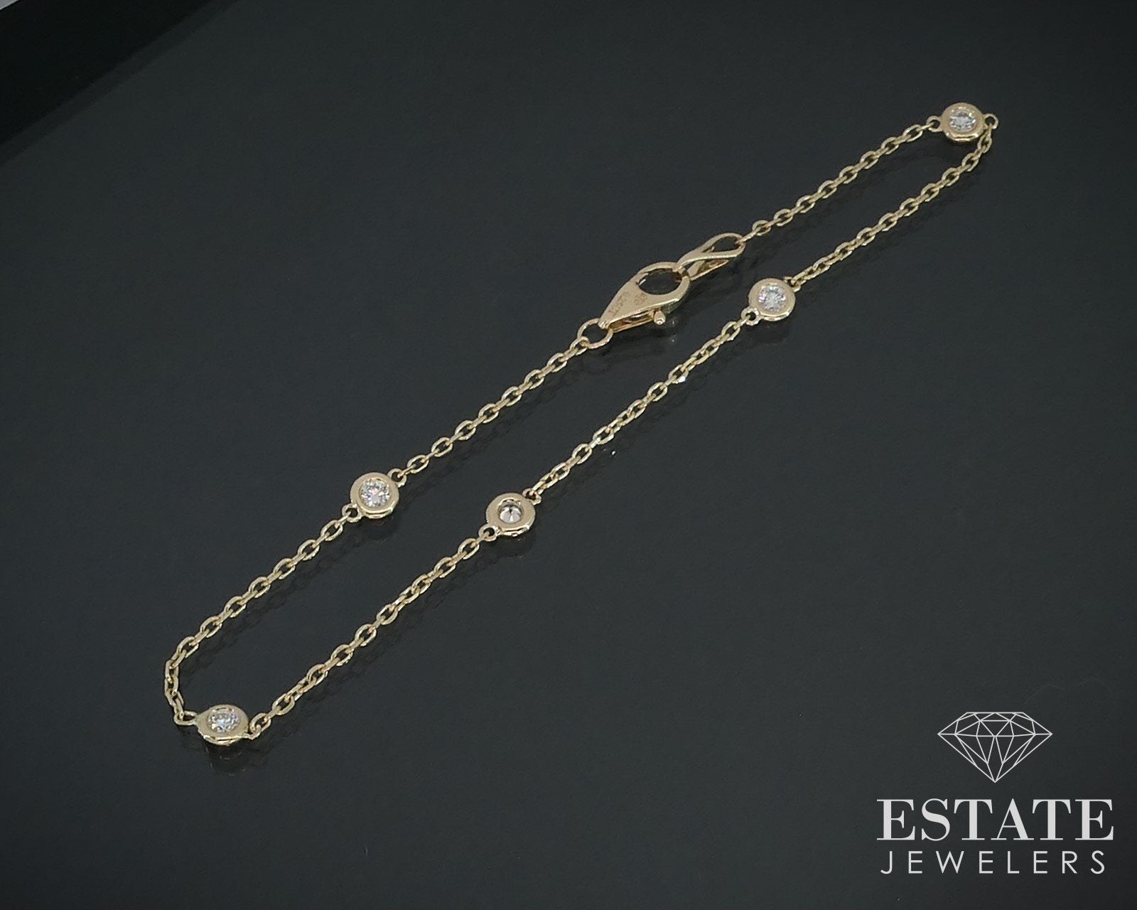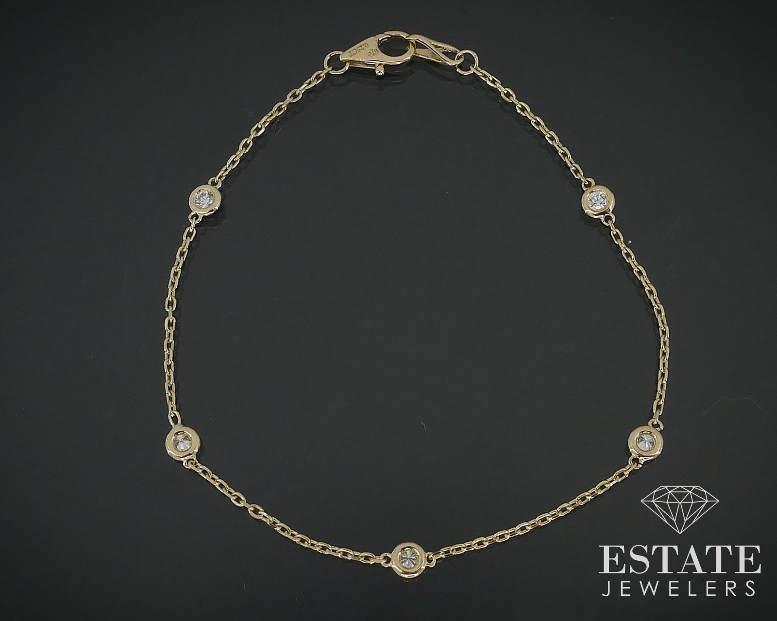 14k Yellow Gold Natural .25ctw Diamond Station Link Bracelet 1.7g 7"L i17890