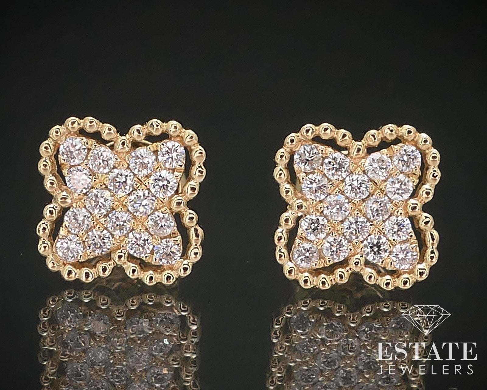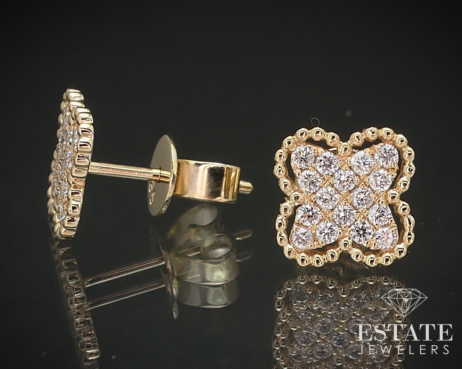 14k Yellow Gold Natural .28ctw Diamond Flower Stud Earrings 1.1g i16834