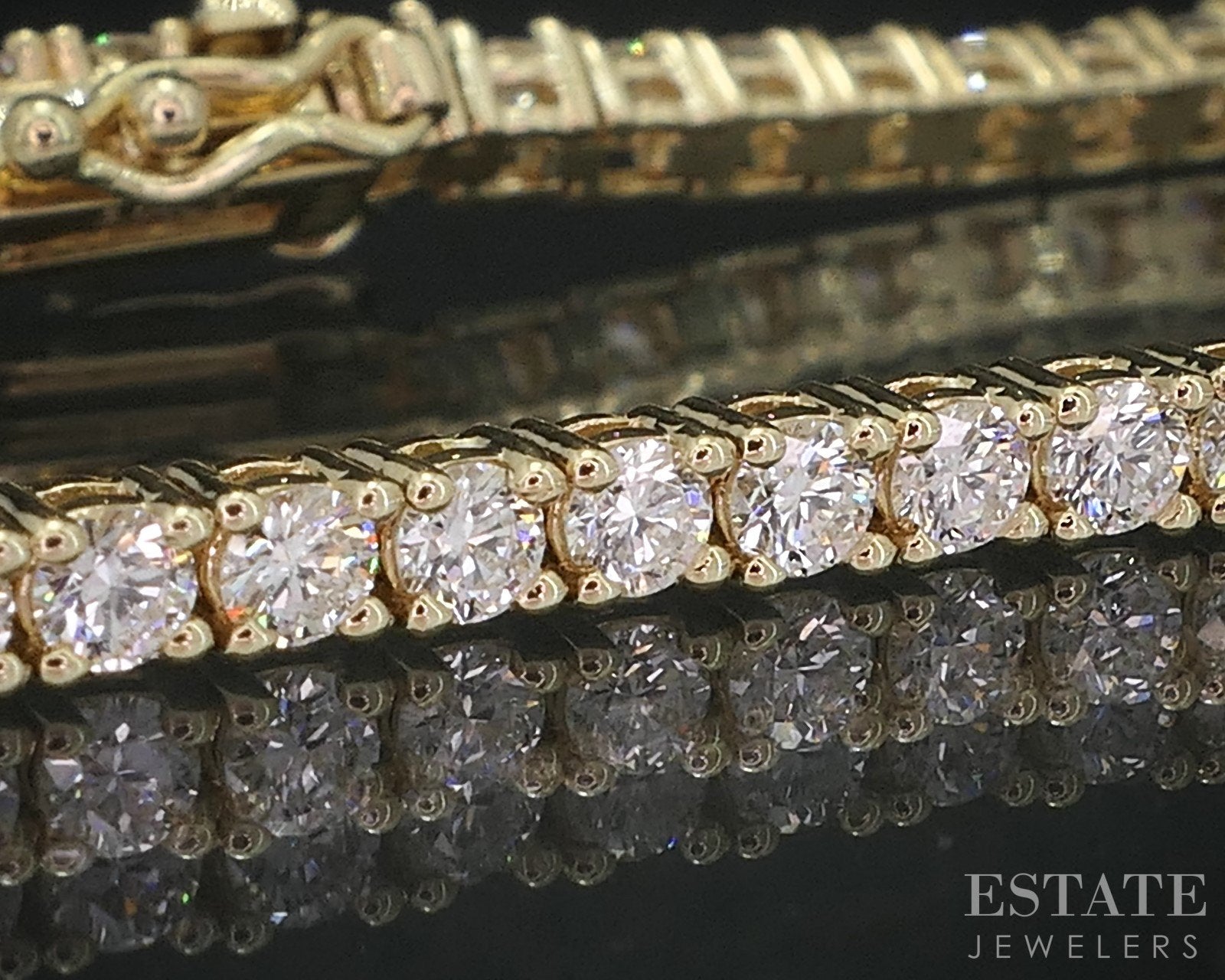 Additional Info: Lovely rich, warm hue of yellow gold beautifully complements the brilliant sparkle of the Diamonds, creating a piece that’s both classic and sophisticated. Set in a seamless, continuous line, the Diamonds are individually placed in 4 prong links to catch and reflect the light from every angle, offering a dazzling display of brilliance with each movement.