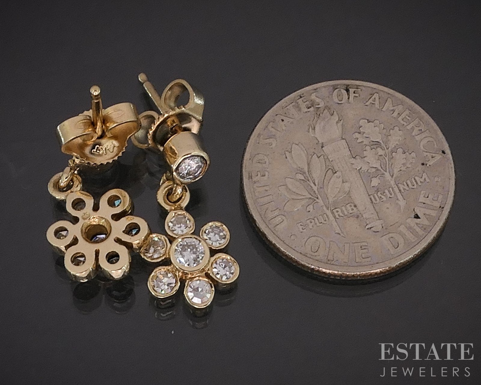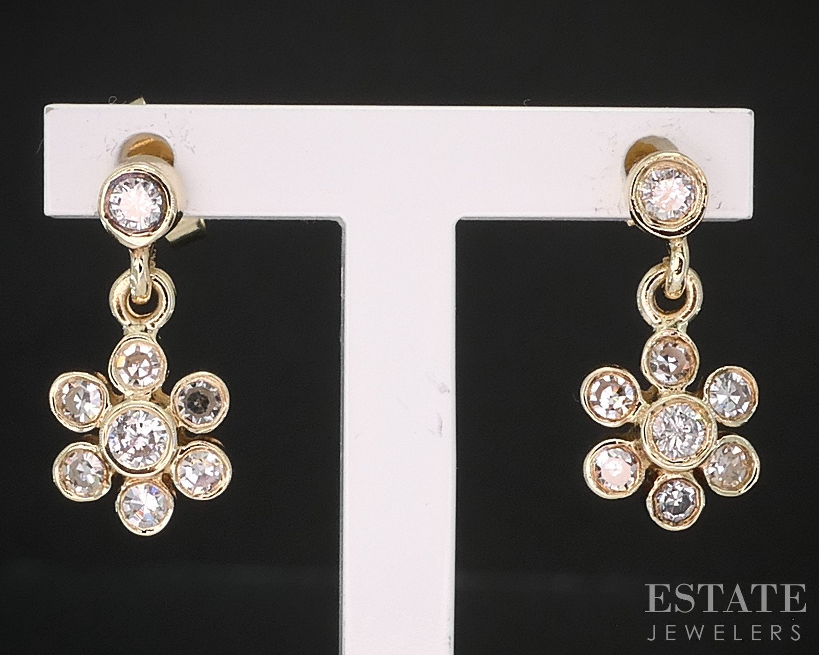14k Yellow Gold Natural .38ctw Diamond Flower Dangle Earrings 2.4g i19441