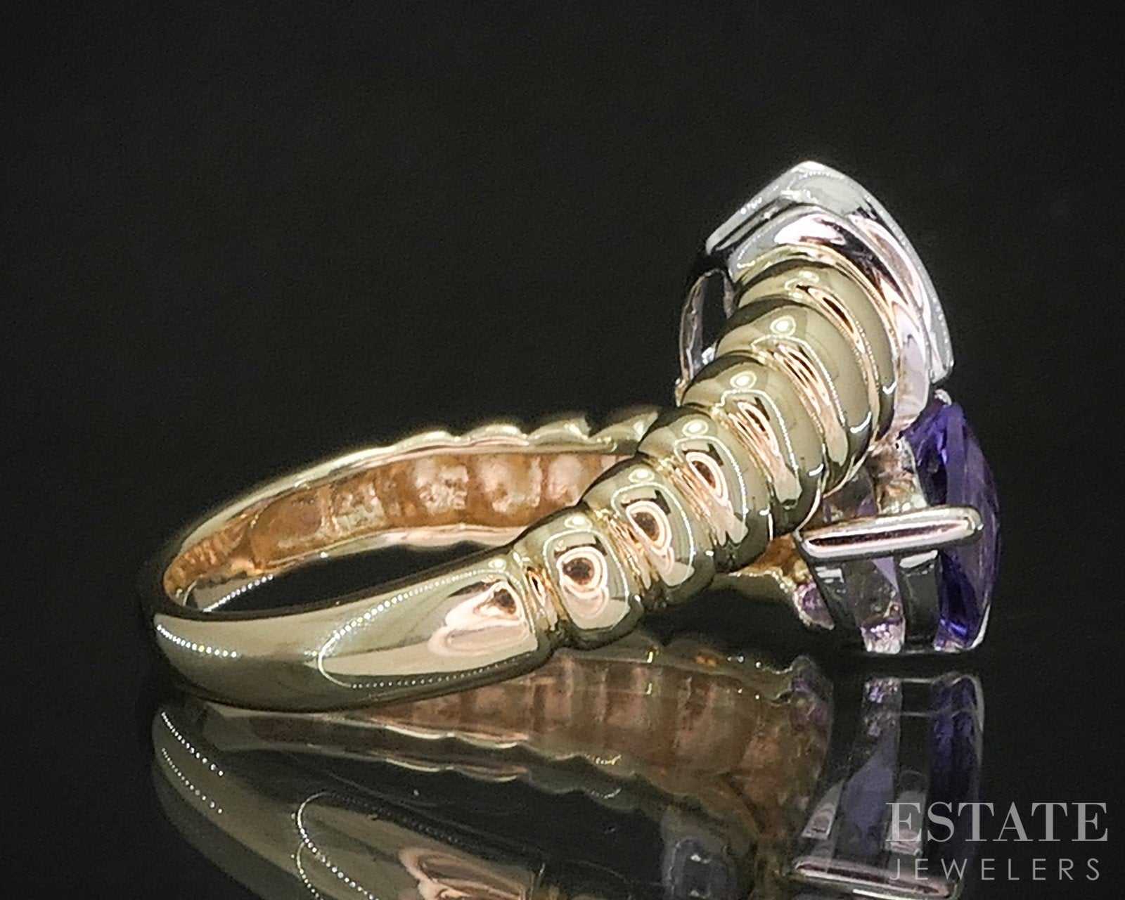 14k Yellow Gold Natural Amethyst & Diamond Bypass Ladies Ring 6.1g p16658b
