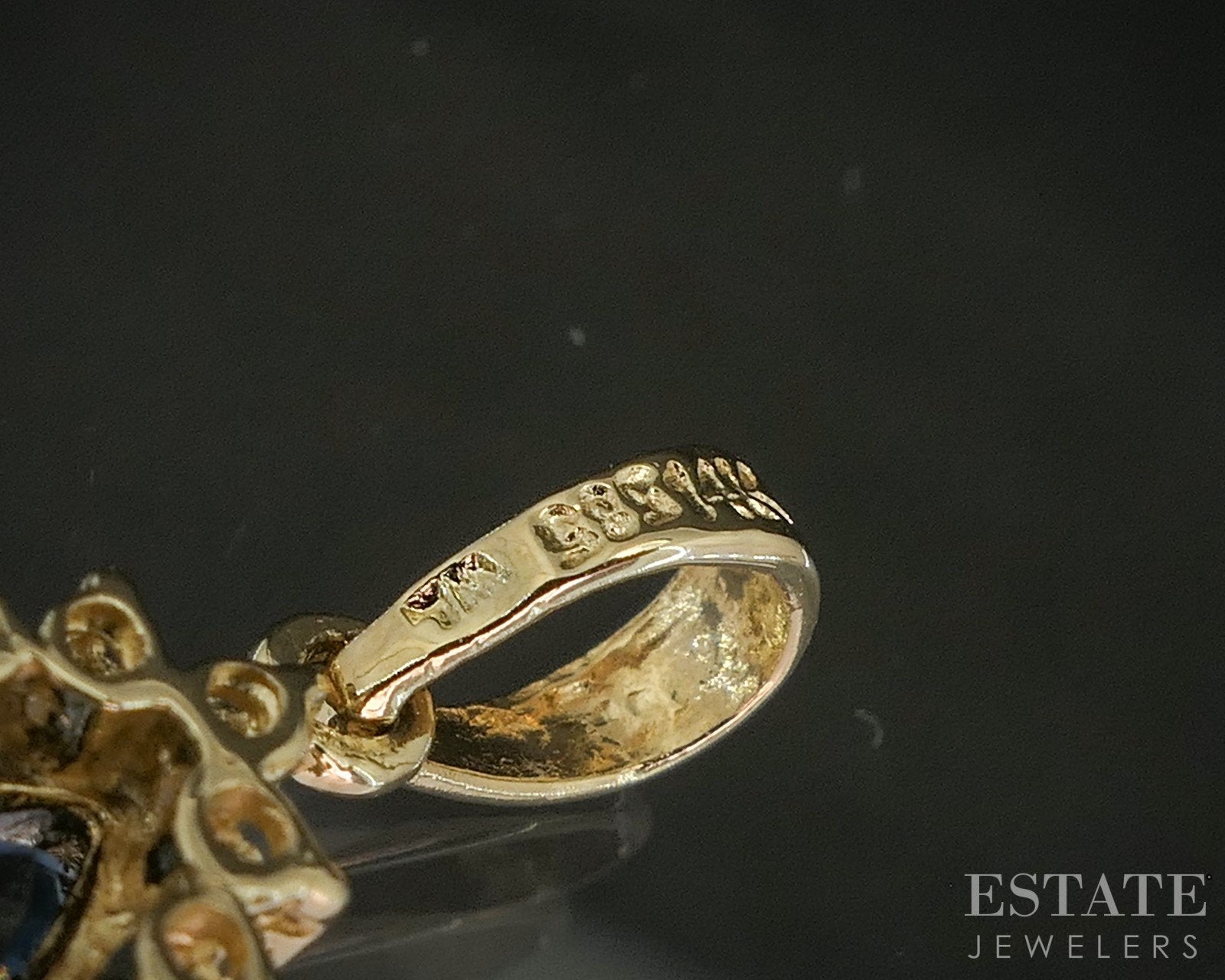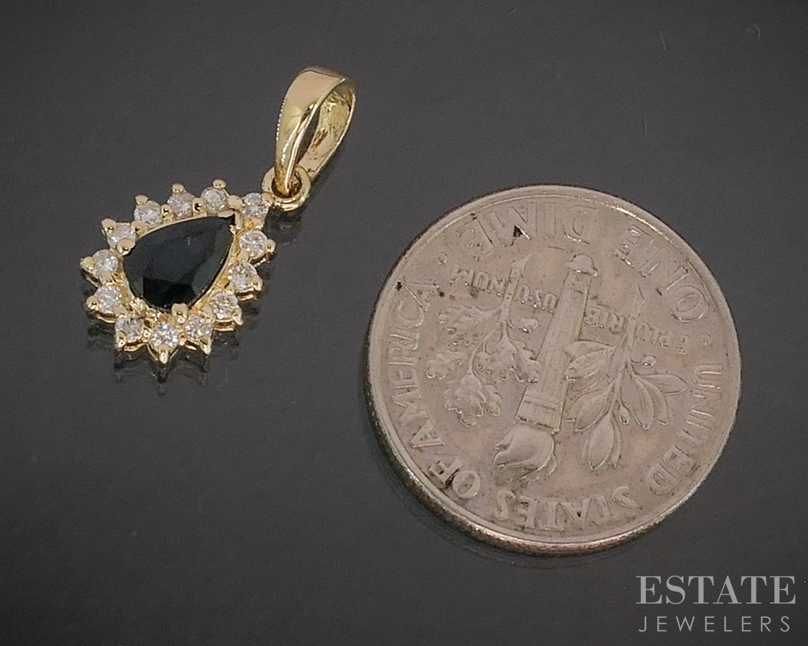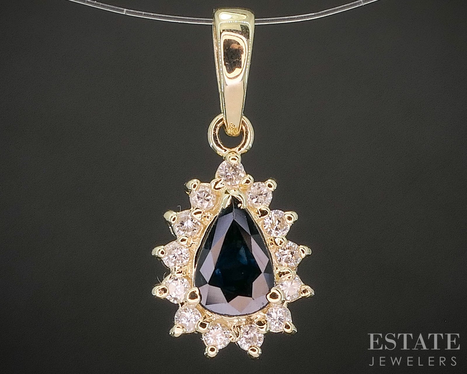 14k Yellow Gold Natural Blue Sapphire & Diamond Teardrop Pendant 0.9g p19240b