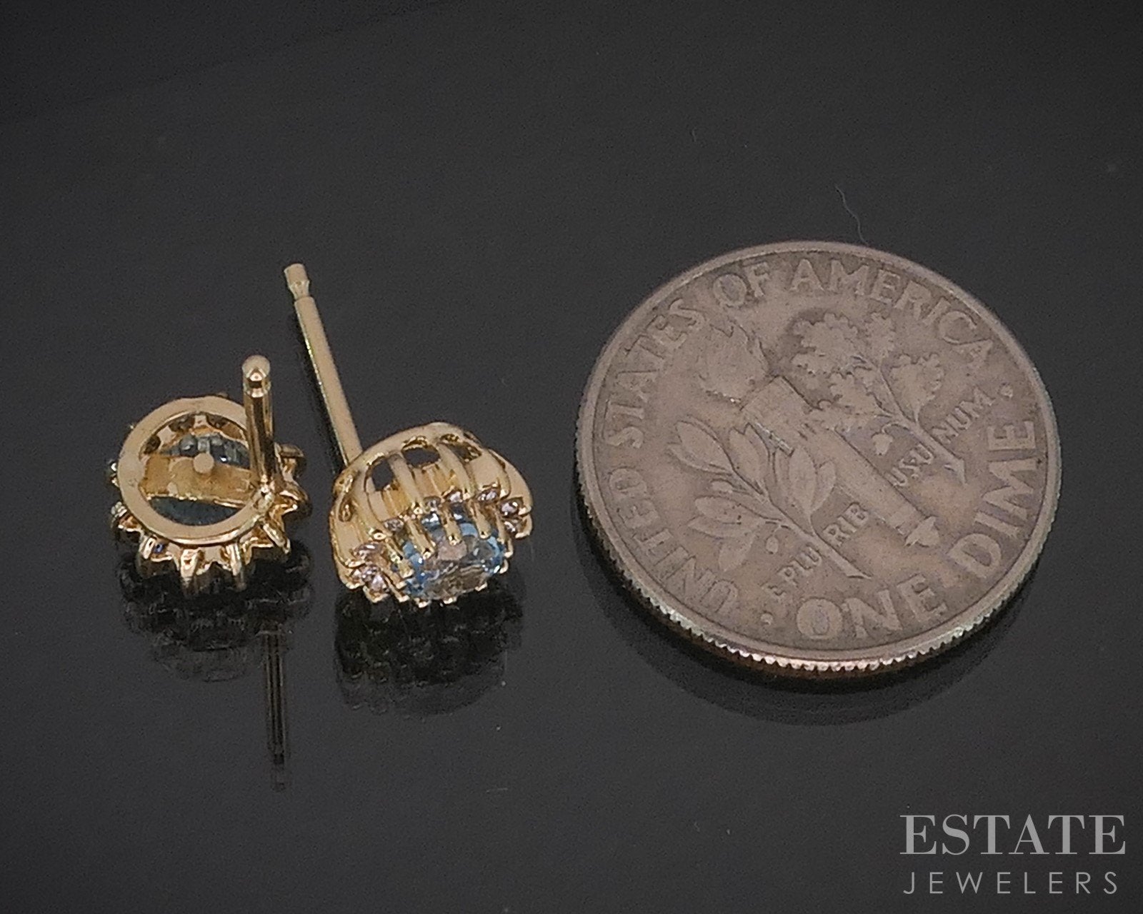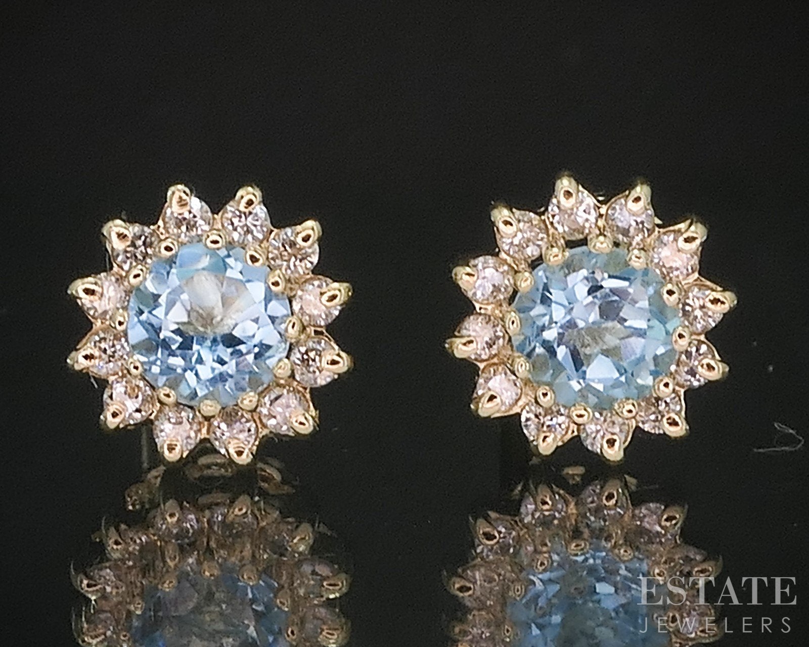 14k Yellow Gold Natural Blue Topaz & Diamond Halo Stud Earrings 1.4g i20129b