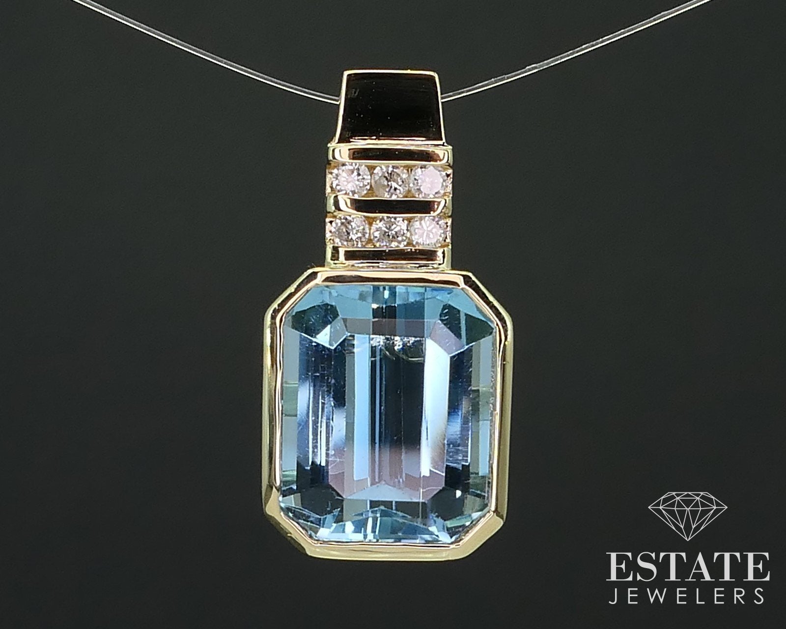 14k Yellow Gold Natural Blue Topaz & Diamond Ladies Pendant 4.7g i16335