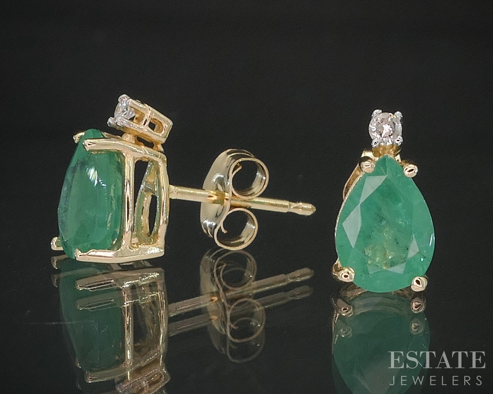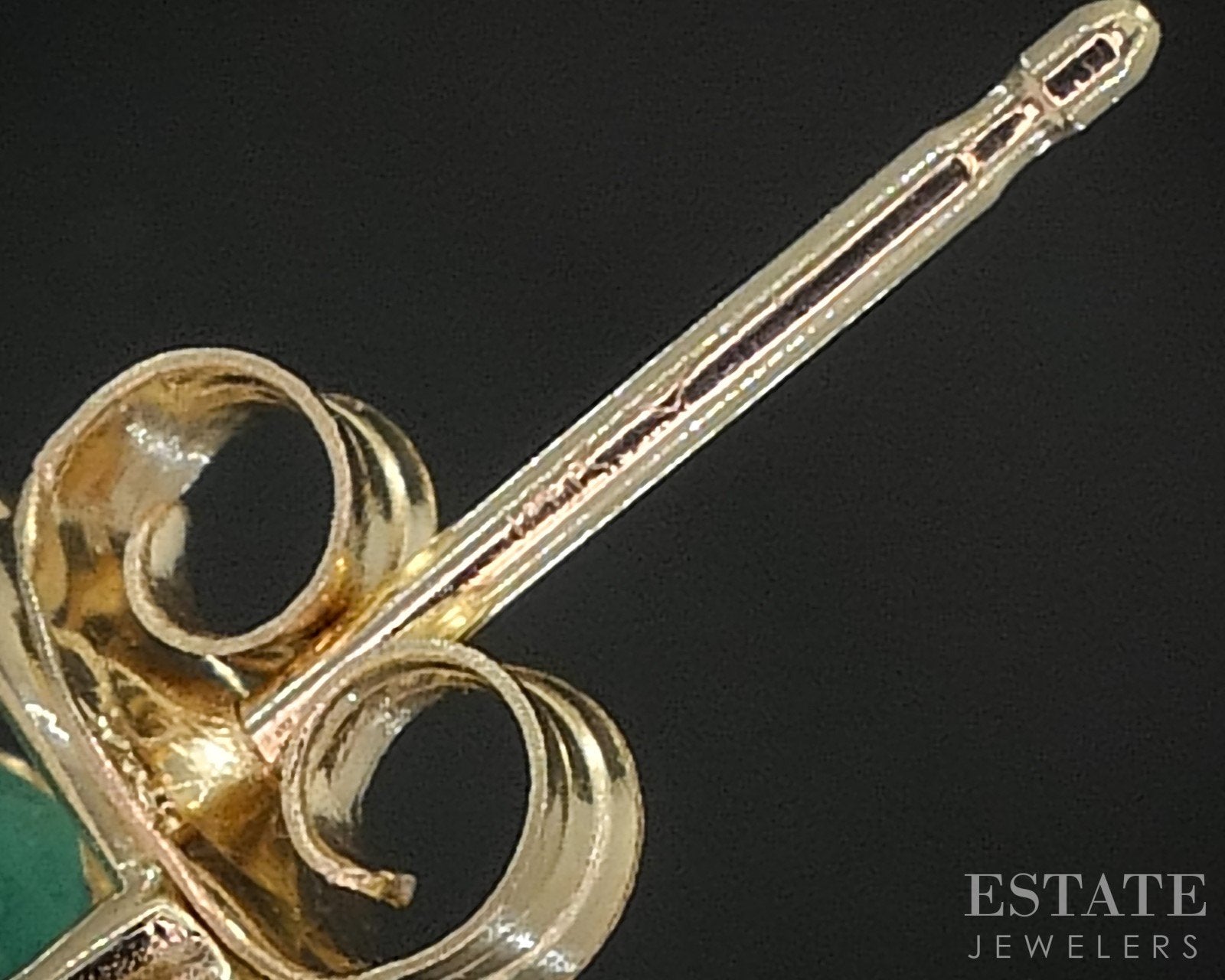 14k Yellow Gold Natural Emerald & Diamond Stud Earrings 1.2g i20358b