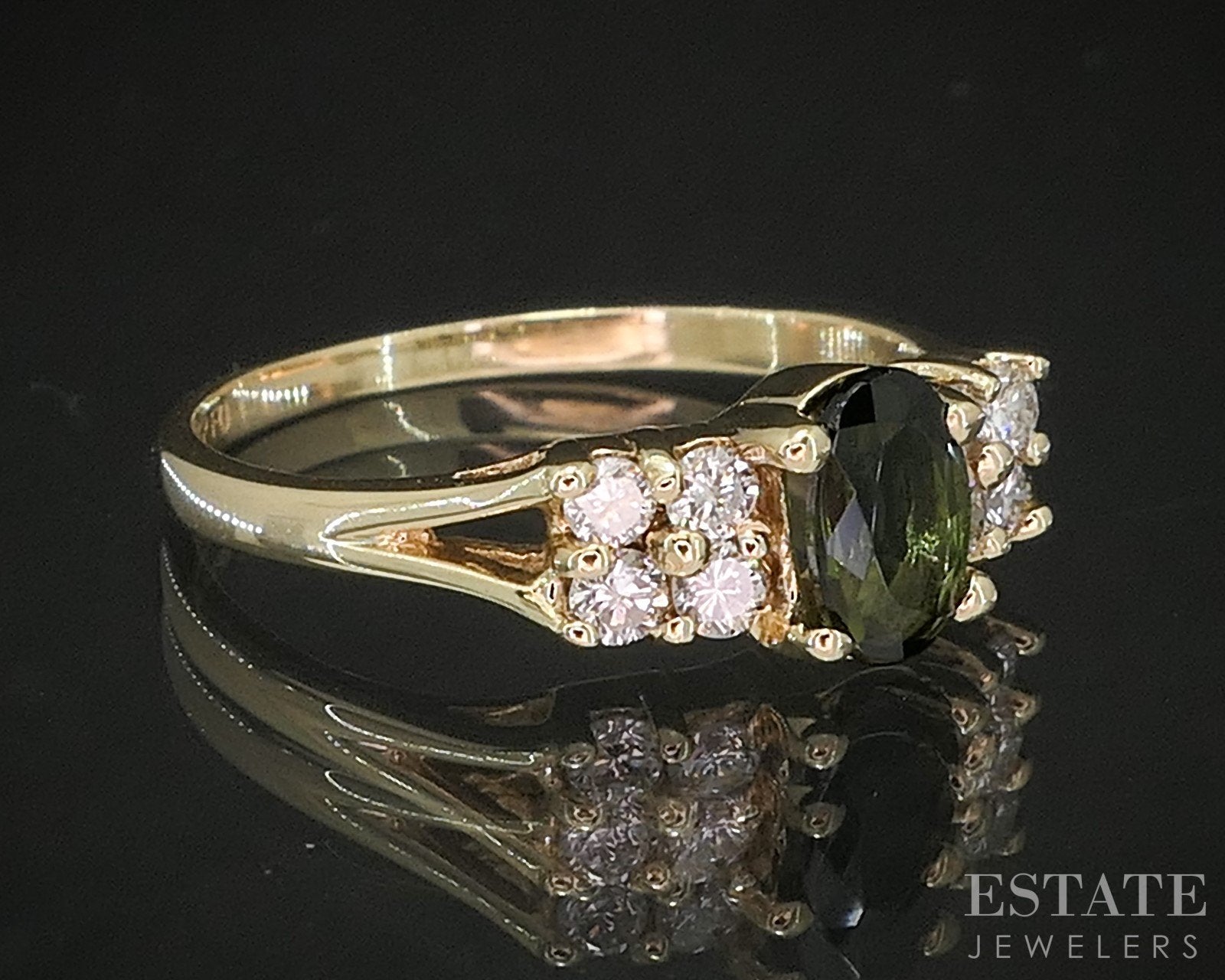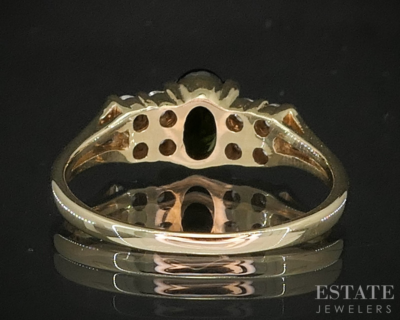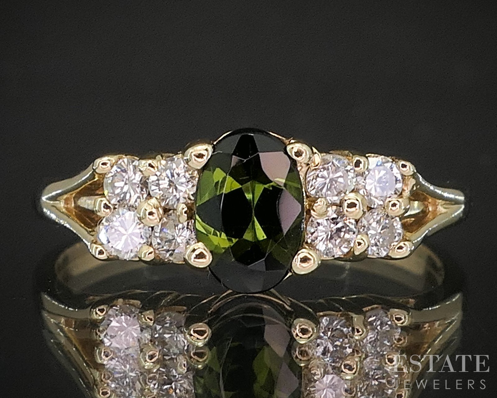 14k Yellow Gold Natural Green Tourmaline & Diamond Ladies Ring 1.9g p18188b