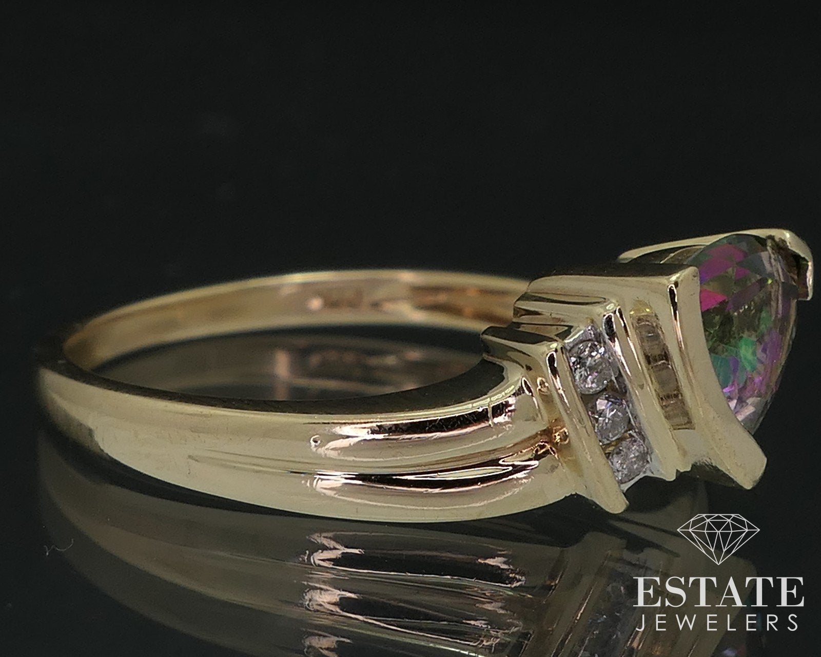 14k Yellow Gold Natural Mystic Topaz & Diamond Ladies Ring 2.4g p77336b
