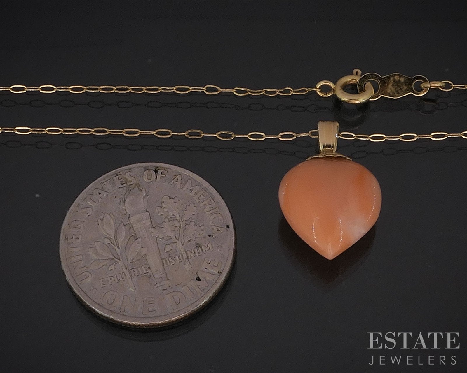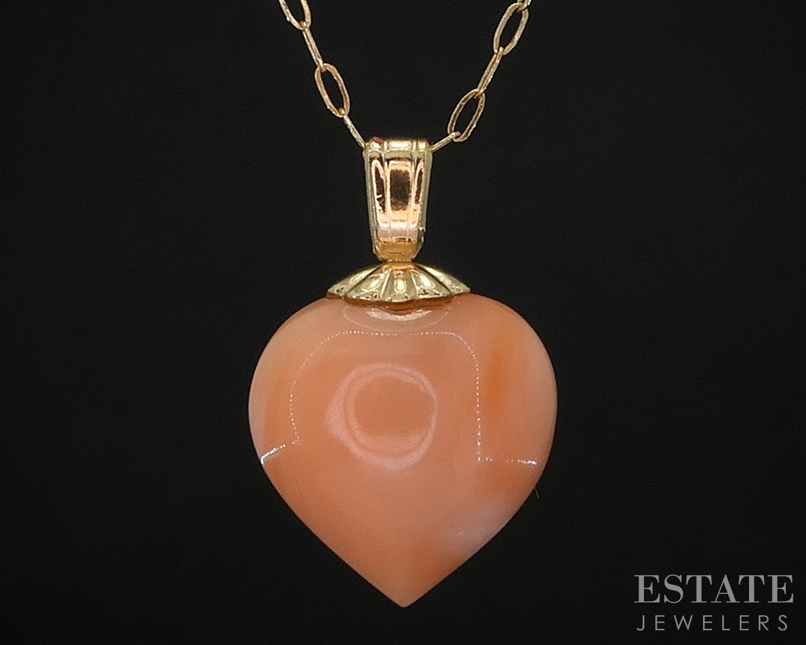 Additional Info: Lovely ladies necklace with a heart shaped Coral. This beauty is attached to a dainty oval link chain.