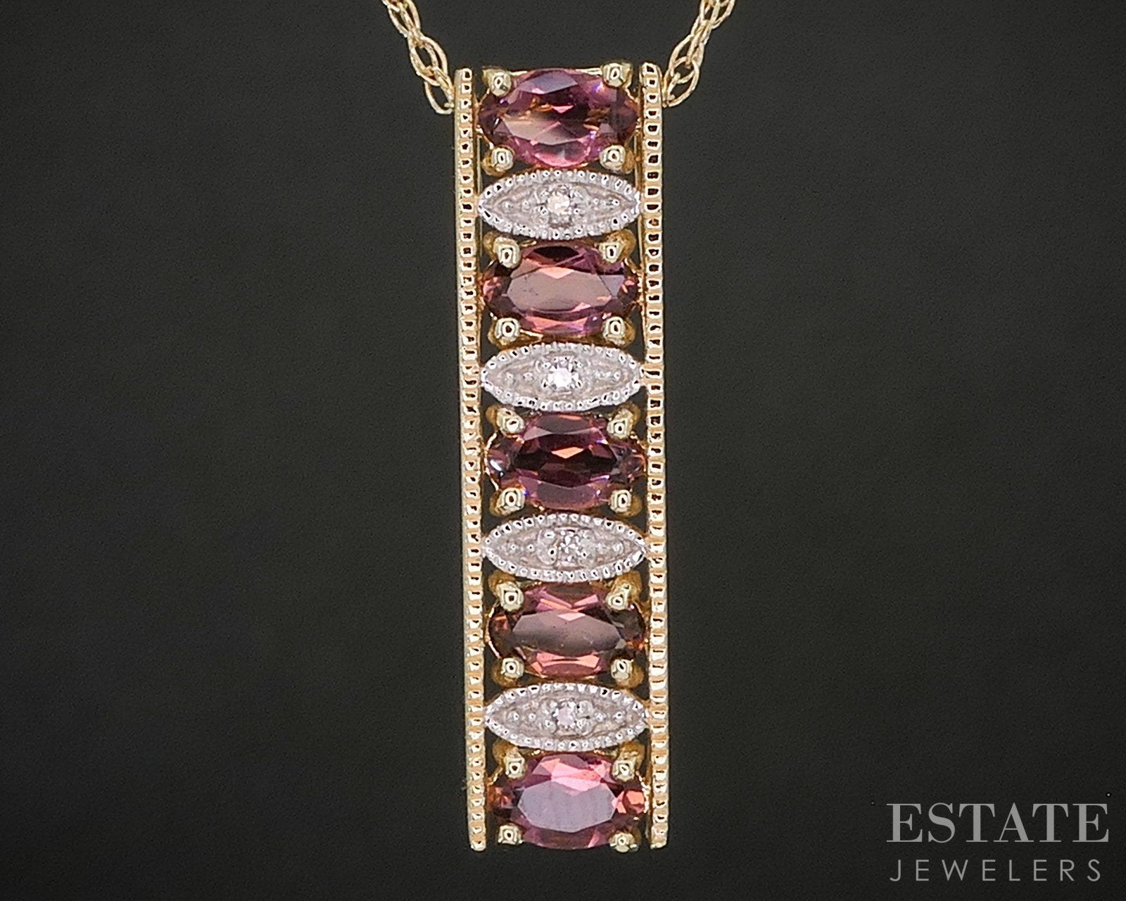 14k Yellow Gold Natural Pink Tourmaline & Diamond Necklace 3.7g 18"L i20338