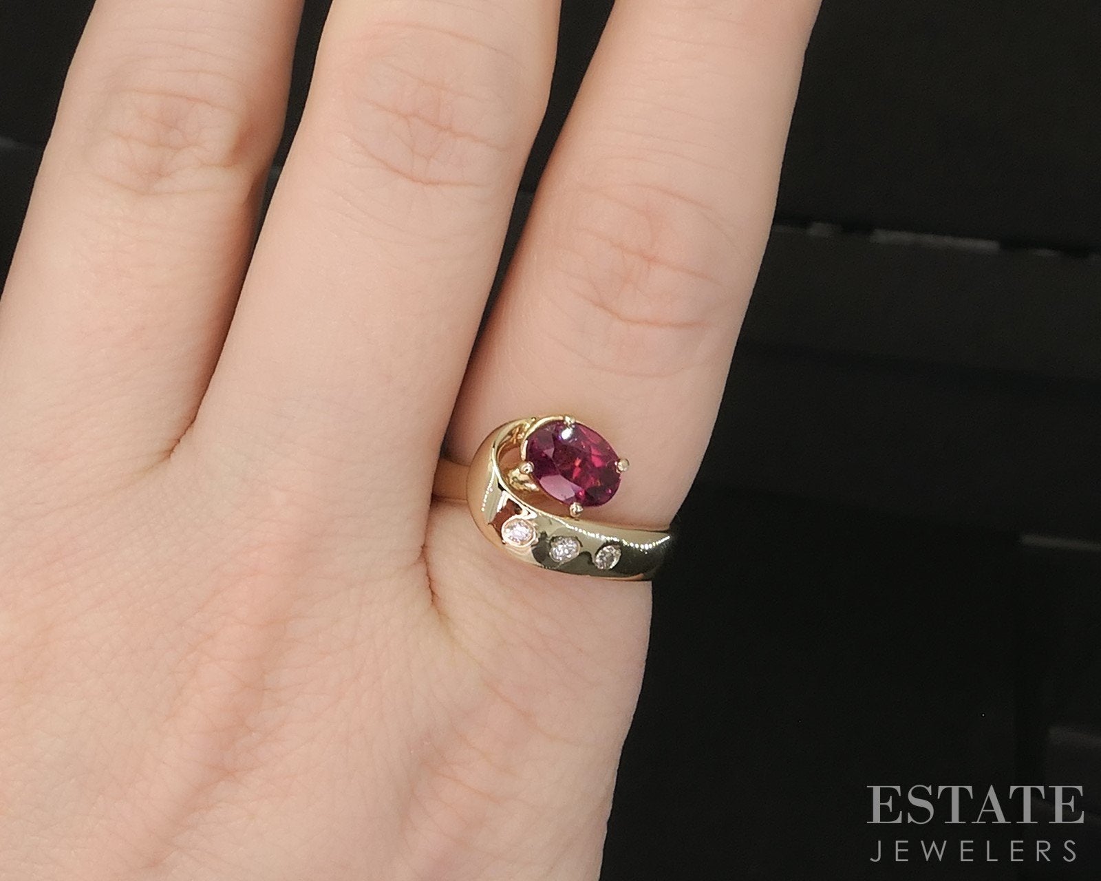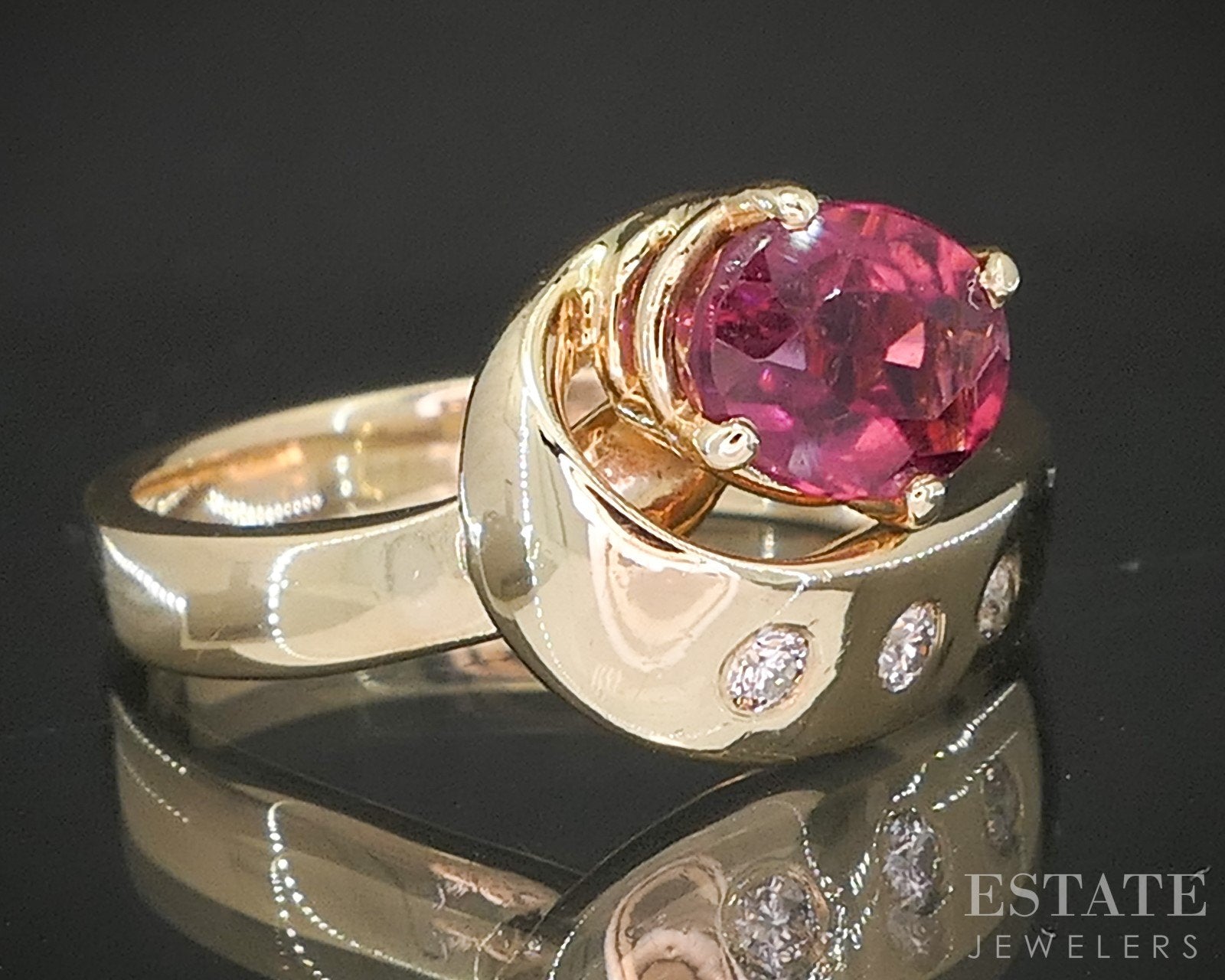 14k Yellow Gold Natural Pink Tourmaline & Diamond Swirl Ring 5.9g p16274