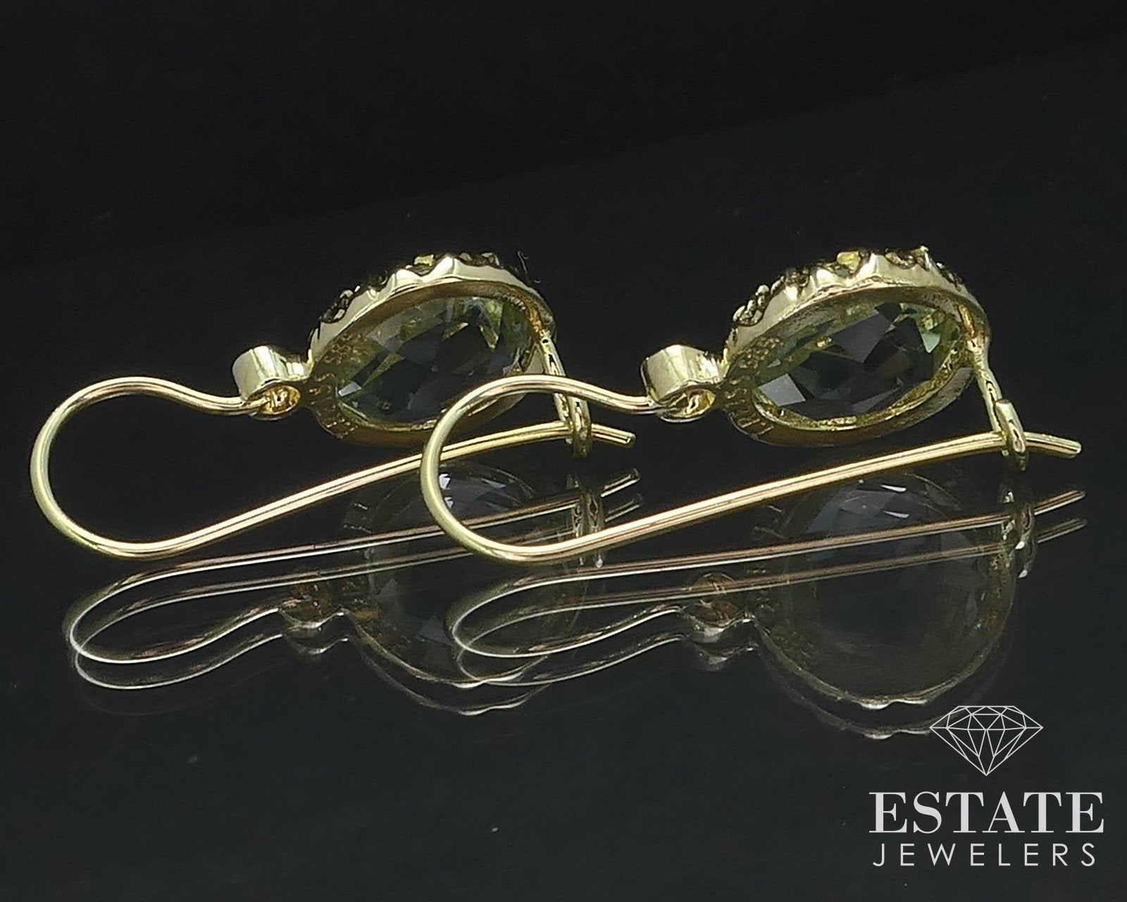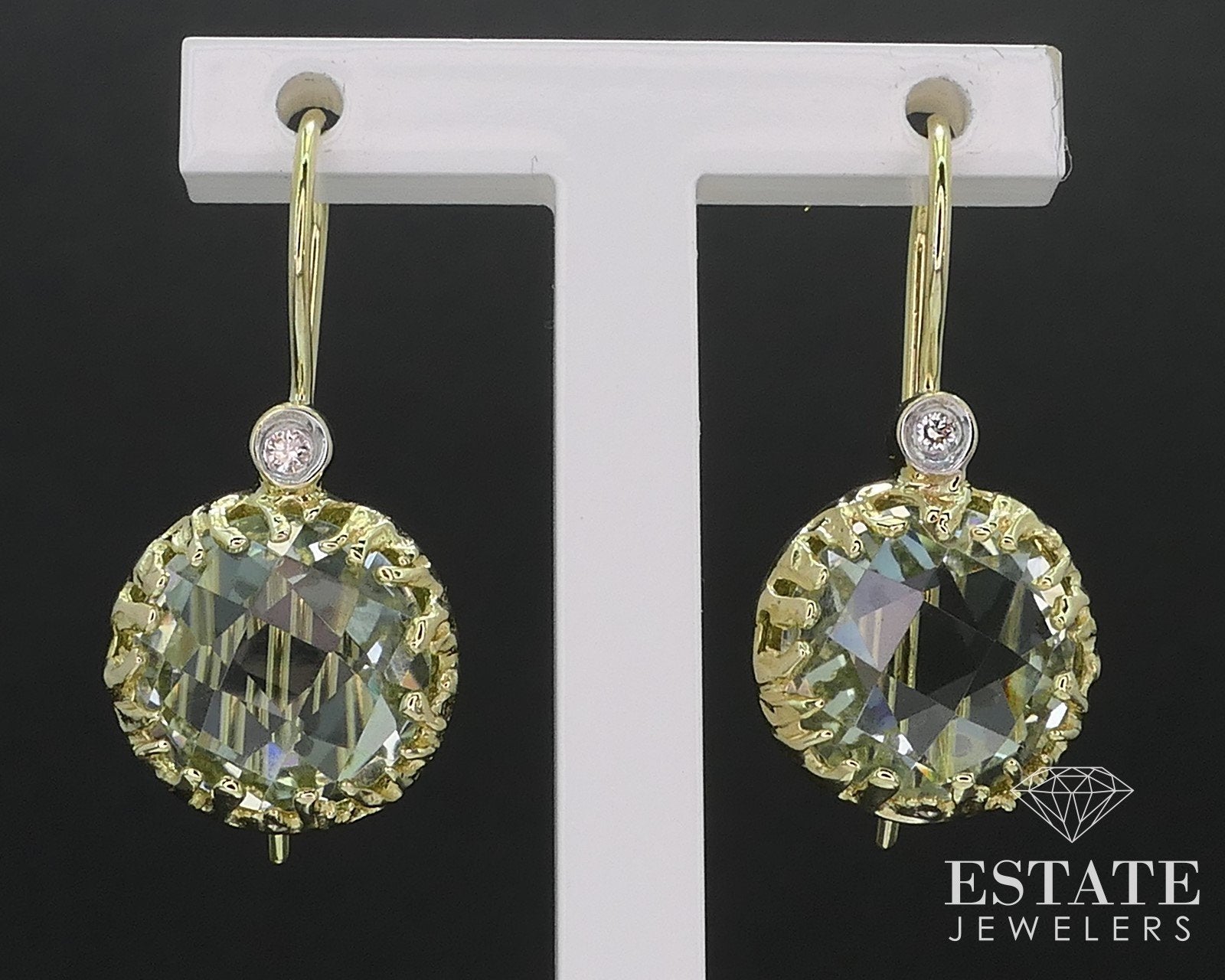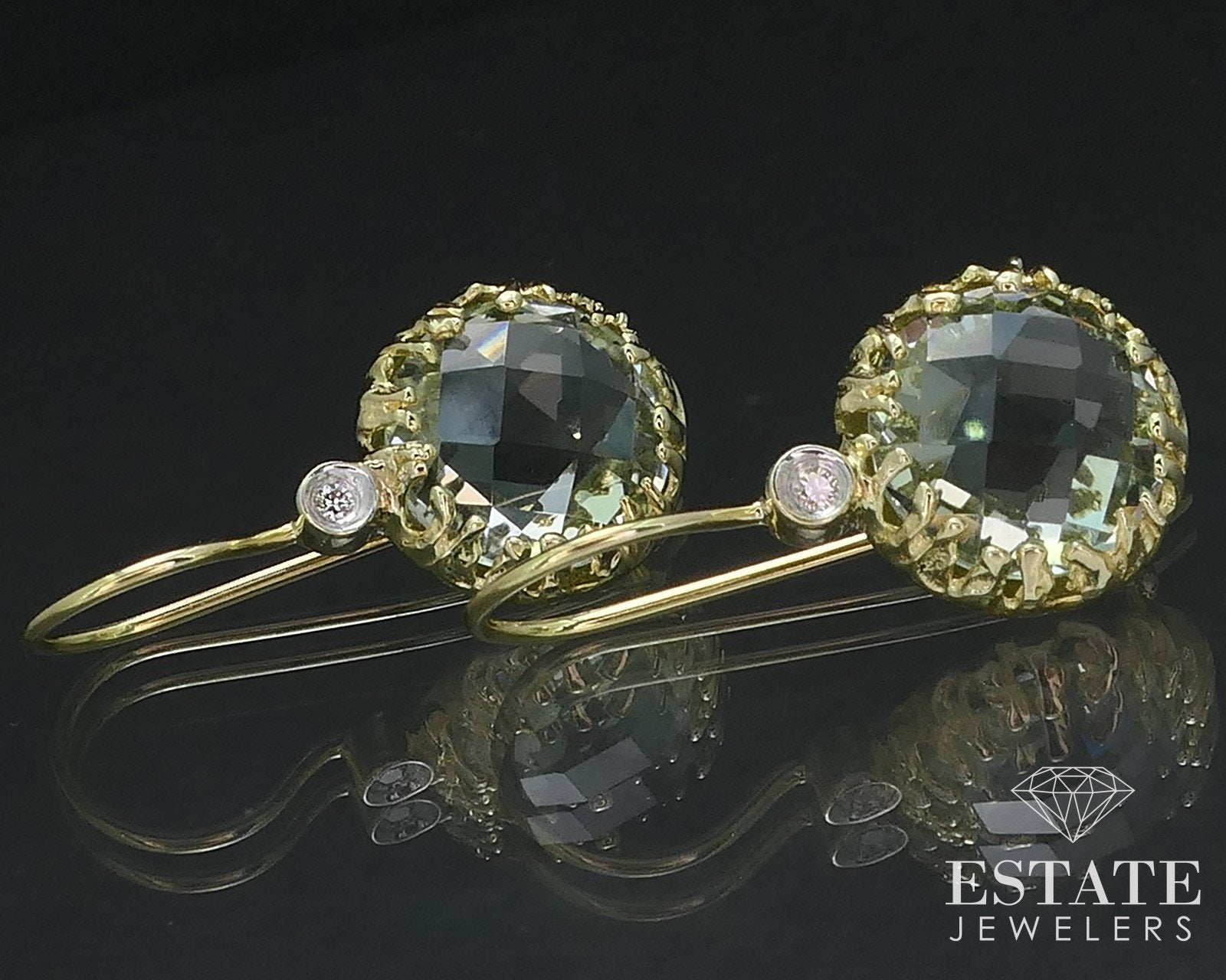 14k Yellow Gold Natural Prasiolite & Diamond I. Reiss Earrings 3.6g i17540
