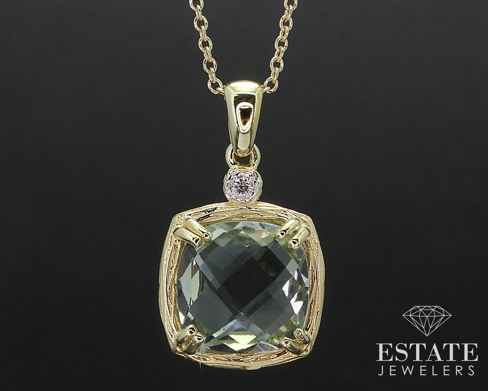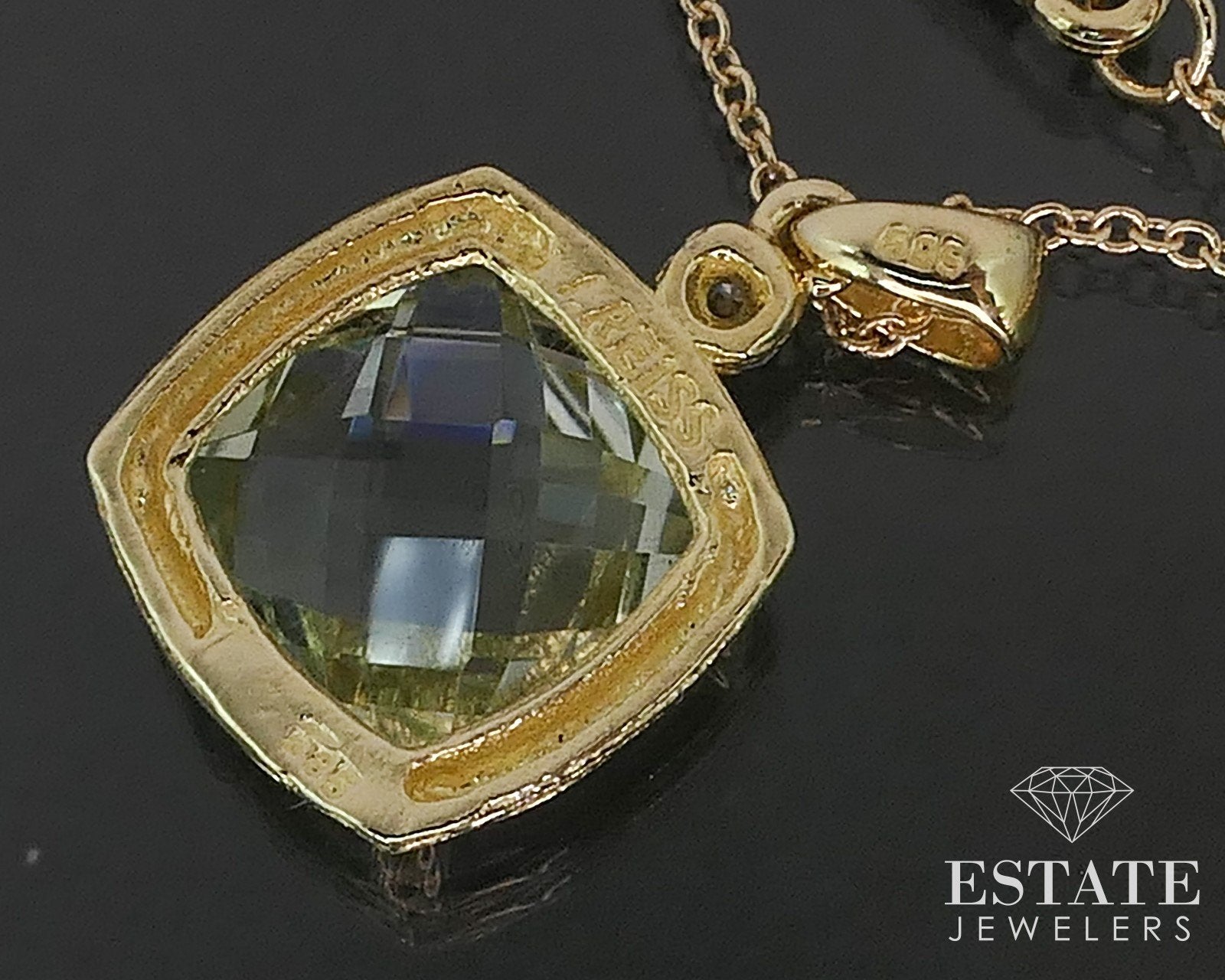14k Yellow Gold Natural Prasiolite & Diamond I. Reiss Necklace 3.6g 16"L i17542
