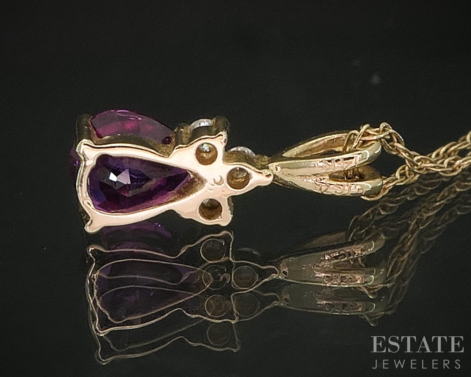Additional Info: Lovely ladies pendant with sparkling Diamonds accenting the vivid Ruby. Attached to a dainty rope chain.