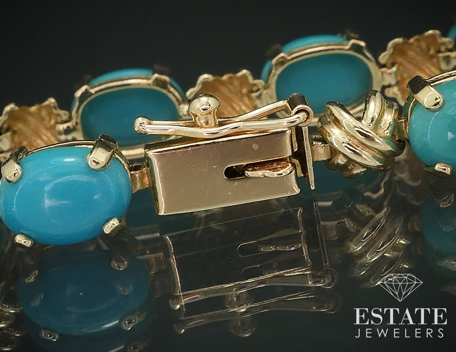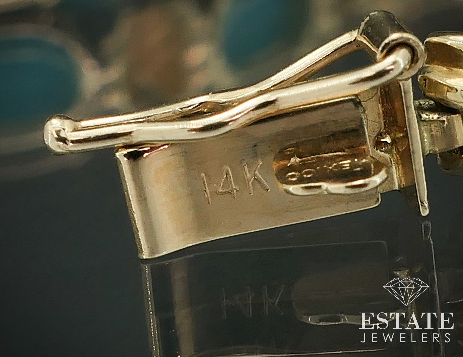 14k Yellow Gold Natural Turquoise XOXO Tennis Bracelet 9.6g 7.25"L i17783