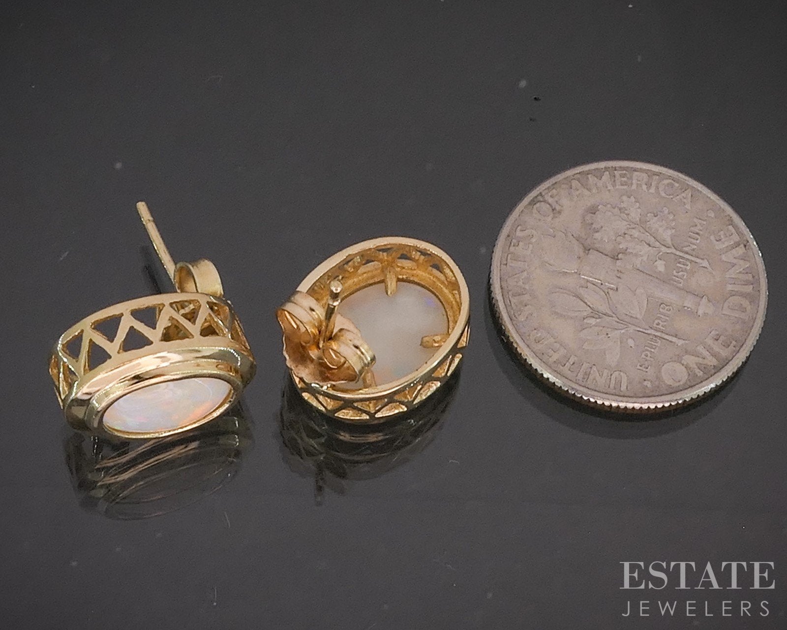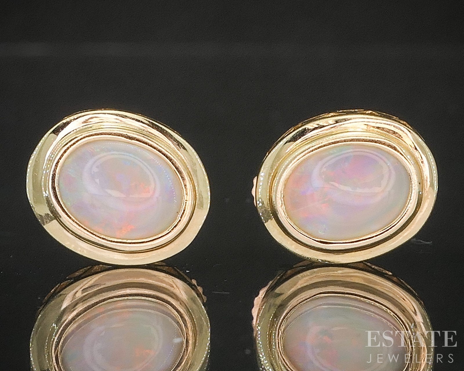 14k Yellow Gold Oval Natural Opal Stud Bezel Stud Earrings 3g p15073