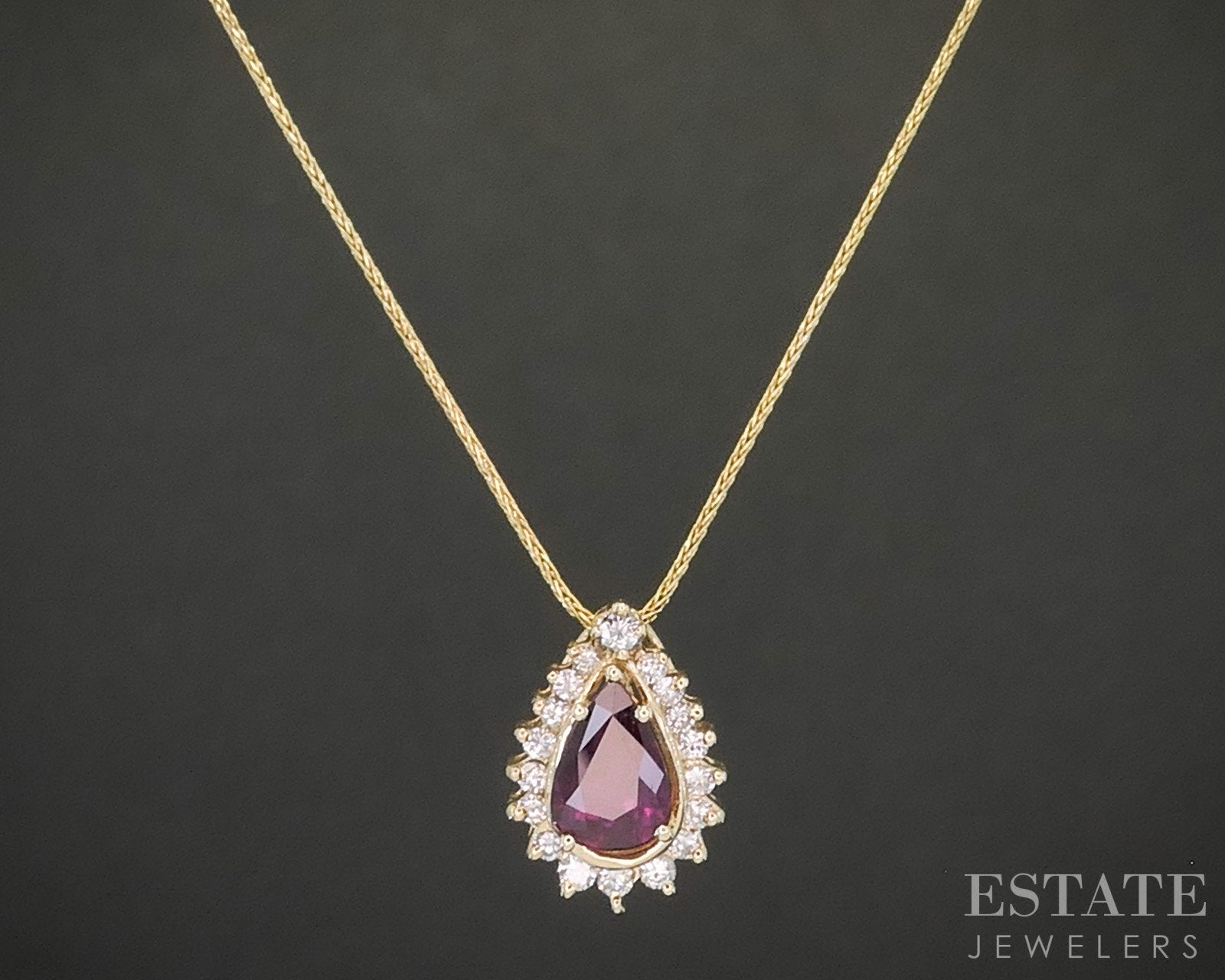 14k Yellow Gold Pear Natural Ruby & Diamond Ladies Necklace 3.2g 18"L p15536