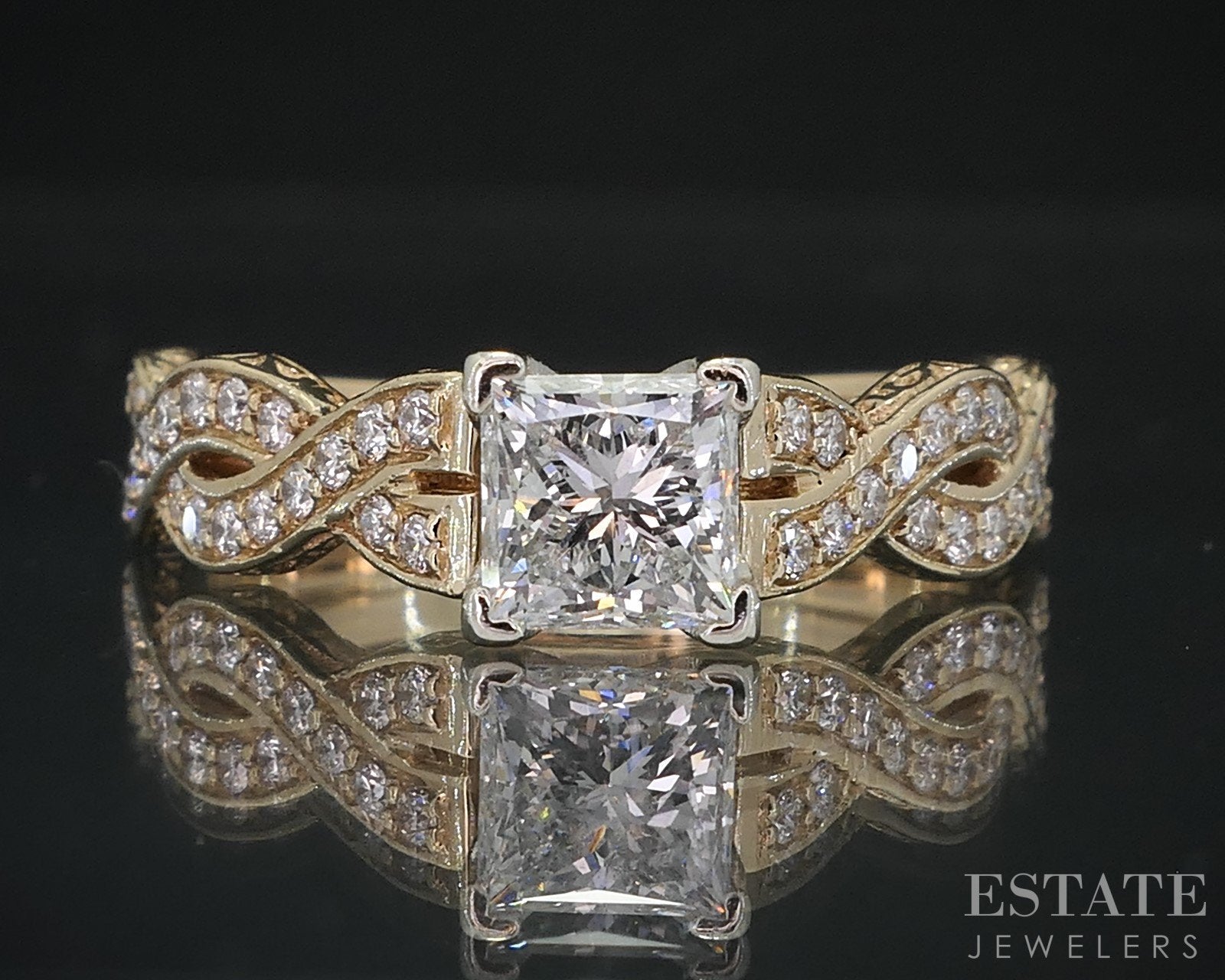 14k Yellow Gold Princess 1.13ctw Diamond Infinity Engagement Ring 5.5g i18634