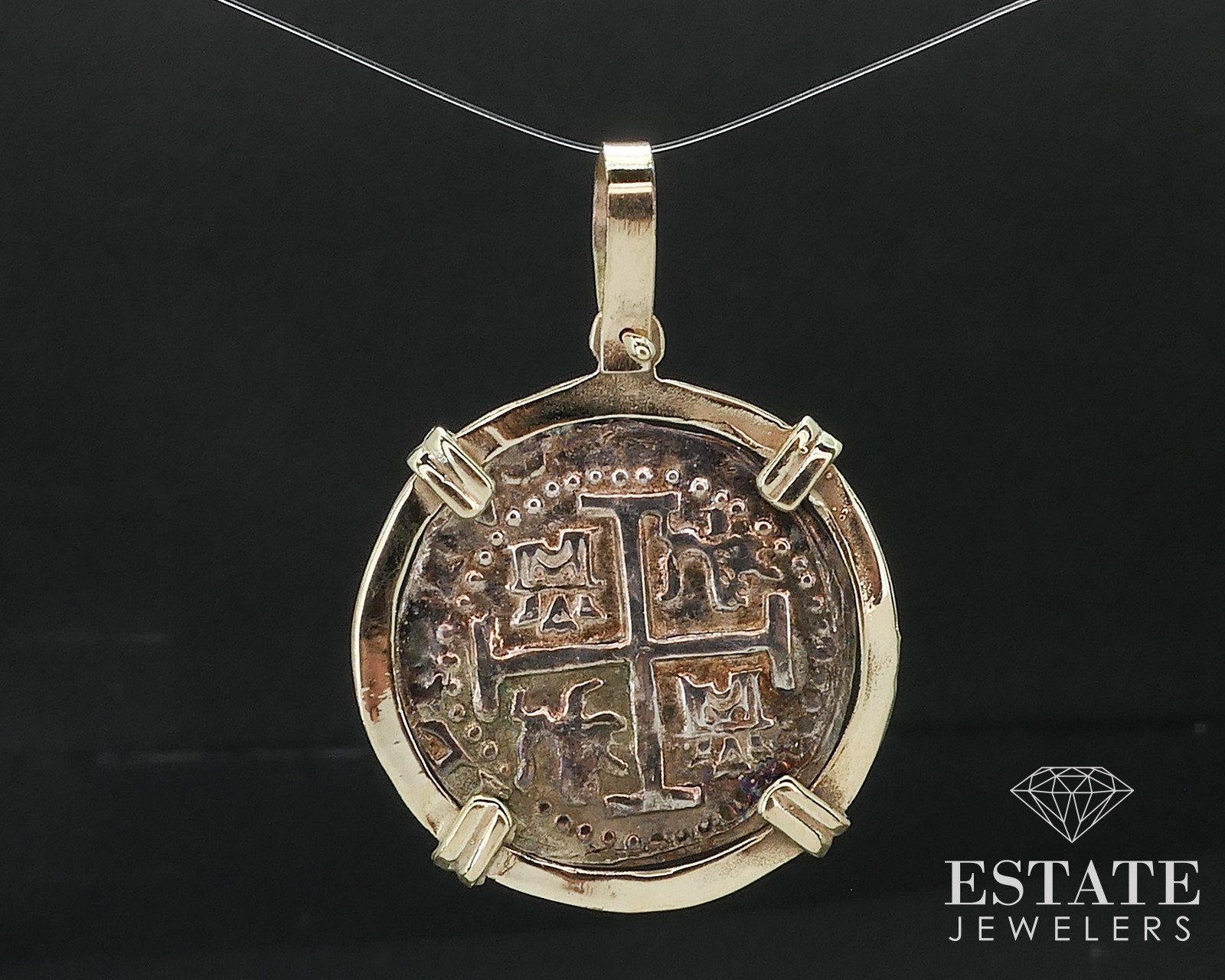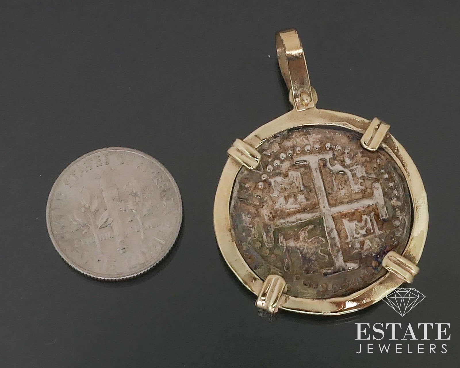 14k Yellow Gold Reales Spanish Ancient Coin Pendant 6.9g i17545