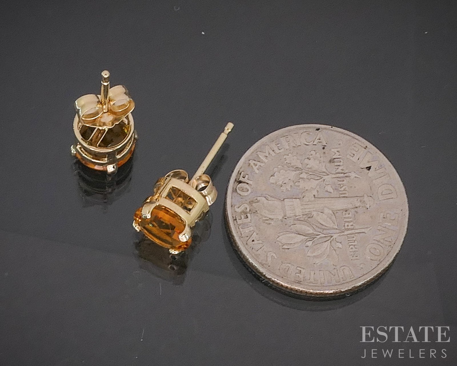 Additional Info: Lovely stud earrings with vivid Citrine gems set in classic 4 prong settings.