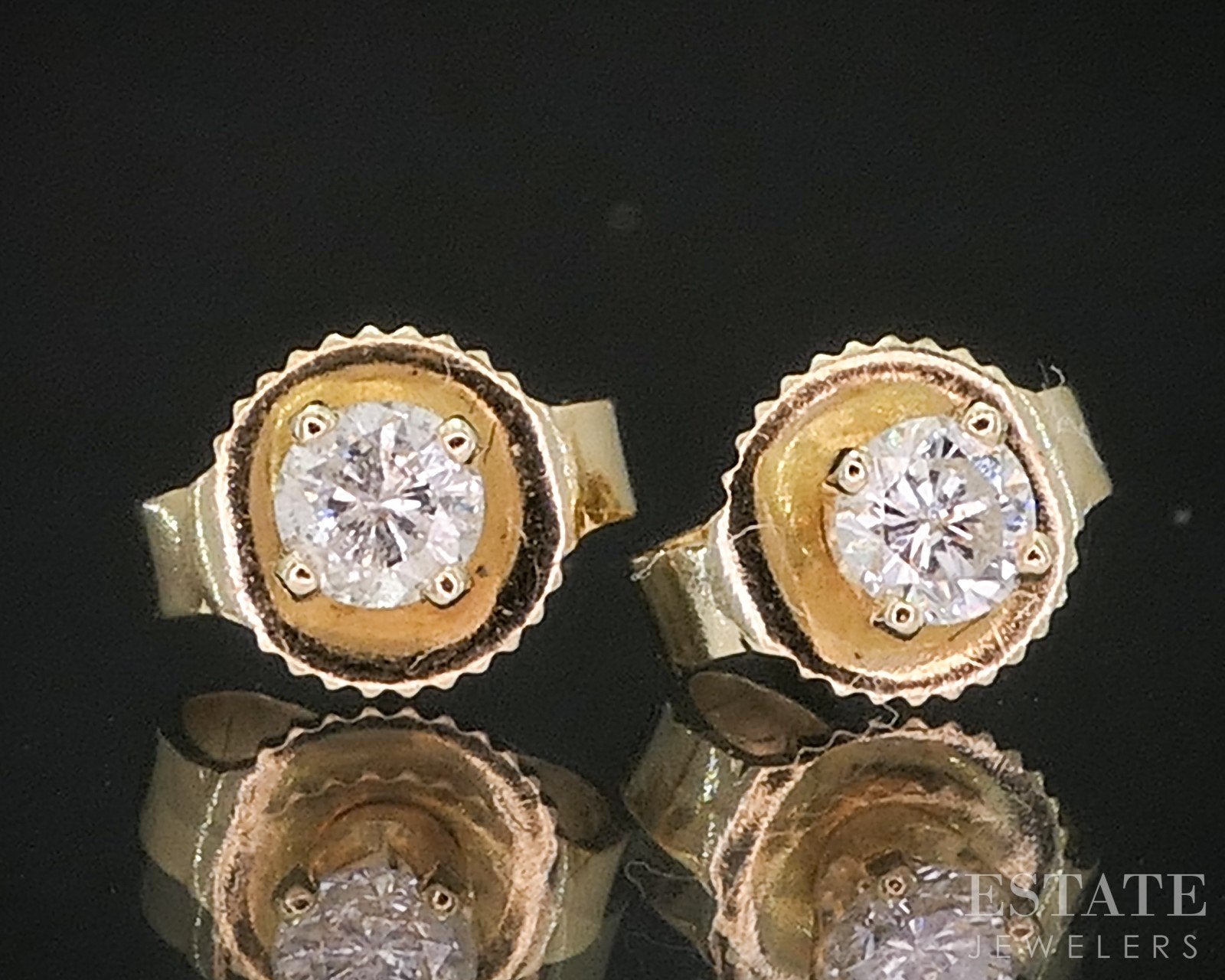 Additional Info: Add a touch of refined brilliance to your jewelry collection with these exquisite yellow gold Diamond studs. Each earring showcases a dazzling, hand-selected Diamond, expertly set in a classic 4-prong mountings.