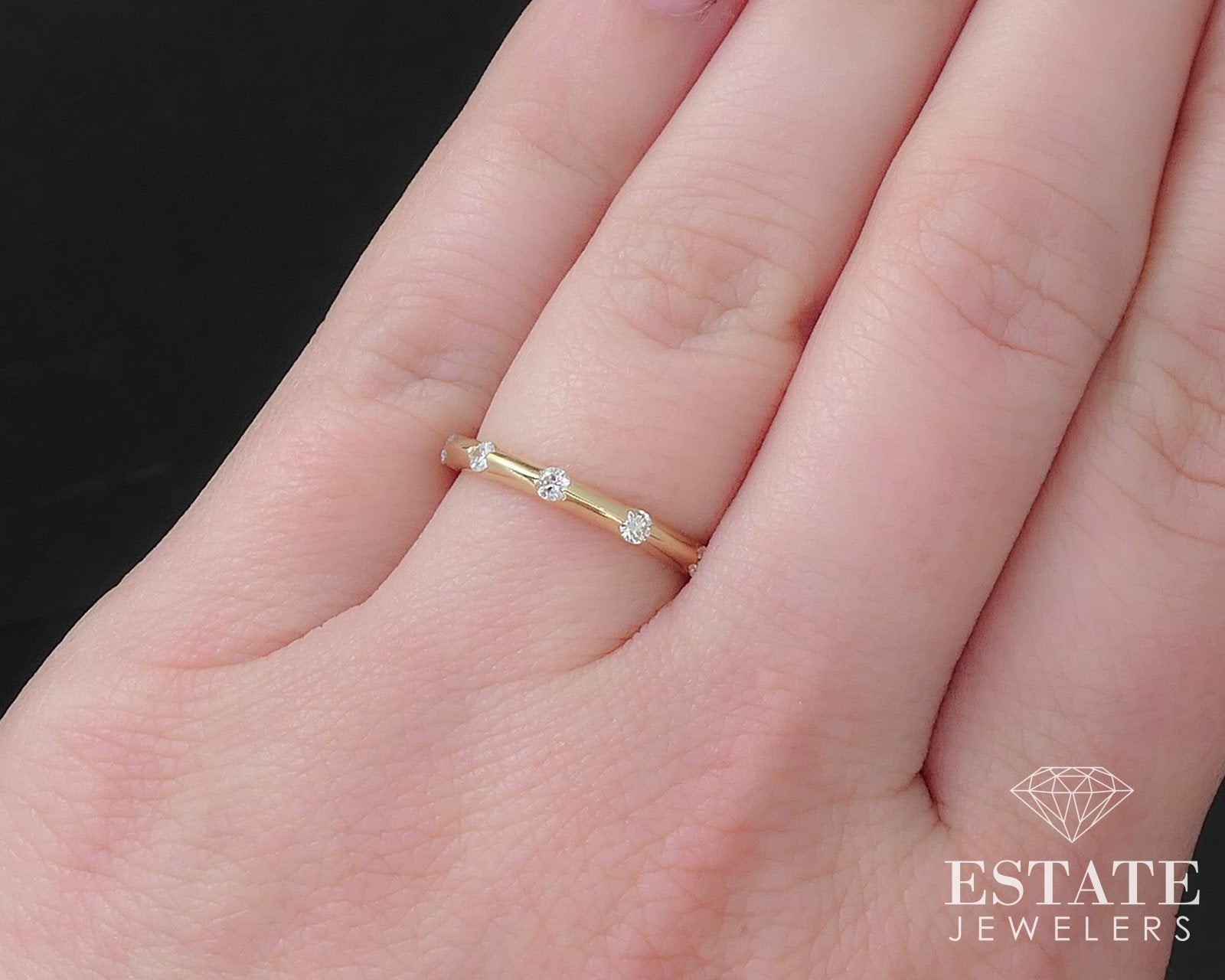 Sparkling ladies straight wedding/anniversary ring with approximately .18ctw of round cut diamonds. SI clarity with HI color. 2.29mm wide band. stamped 14k .18 SIZE-6