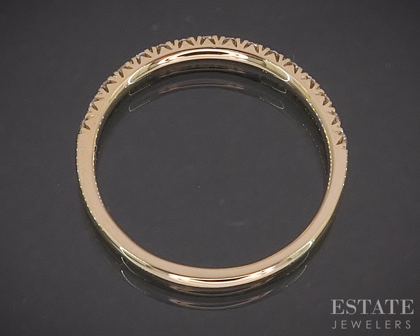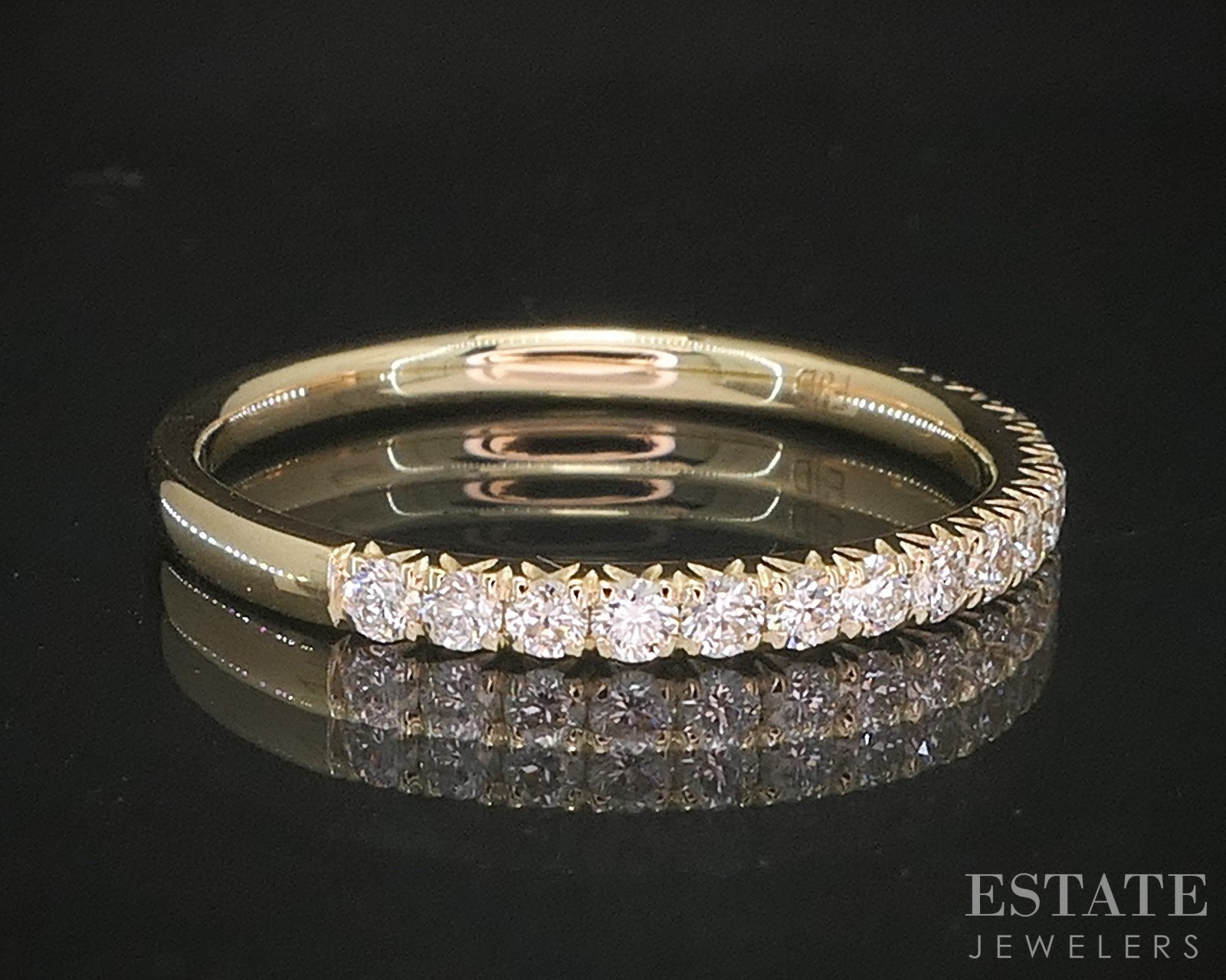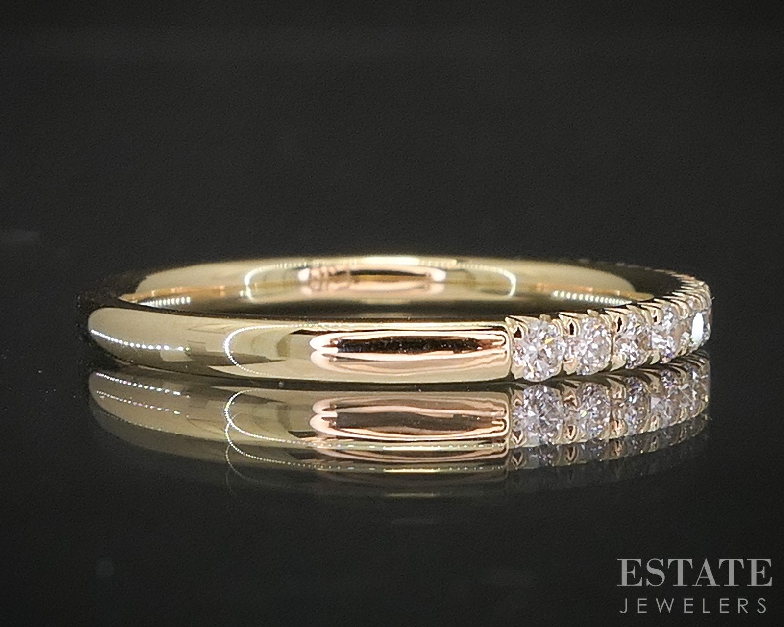 Additional Info: Timeless and refined, this yellow gold wedding band is a beautiful symbol of enduring love. Crafted in rich 14K yellow gold, the band features a row of sparkling round-cut Diamonds set securely in a sleek shared prong setting. The clean lines of the design highlight the brilliance of the Diamonds while offering a smooth, comfortable fit, perfect for everyday wear. Elegant on its own or paired with an engagement ring, this band blends classic style with lasting sophistication. 2.3mm wide