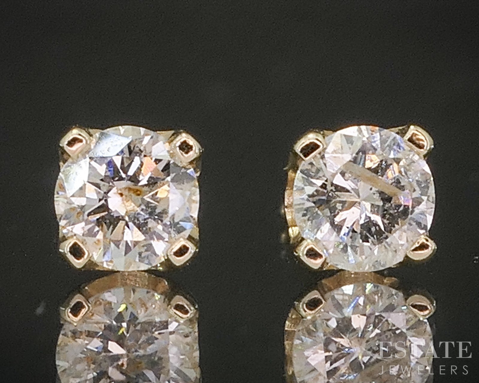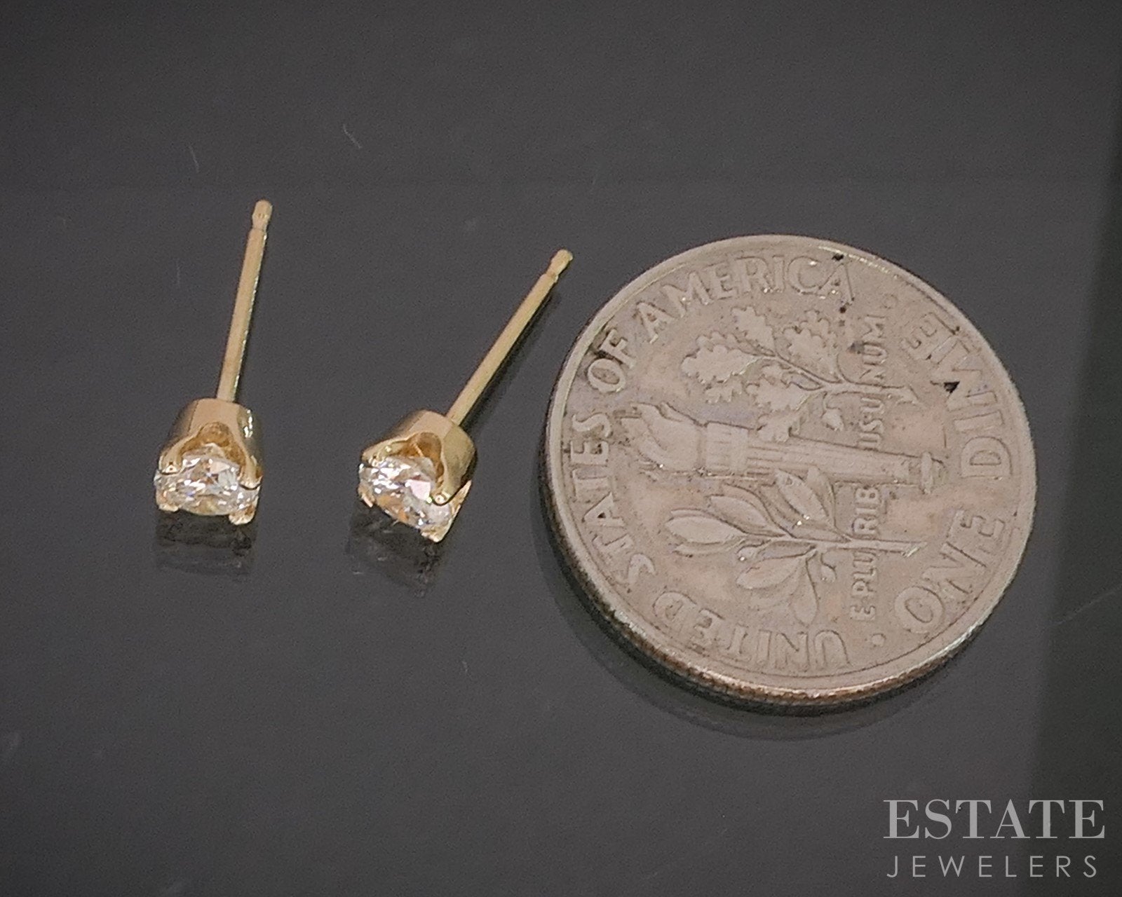 Additional Info: Add a touch of refined brilliance to your jewelry collection with these exquisite yellow gold Diamond studs. Each earring showcases a dazzling, hand-selected Diamond, expertly set in a classic 4-prong mountings.