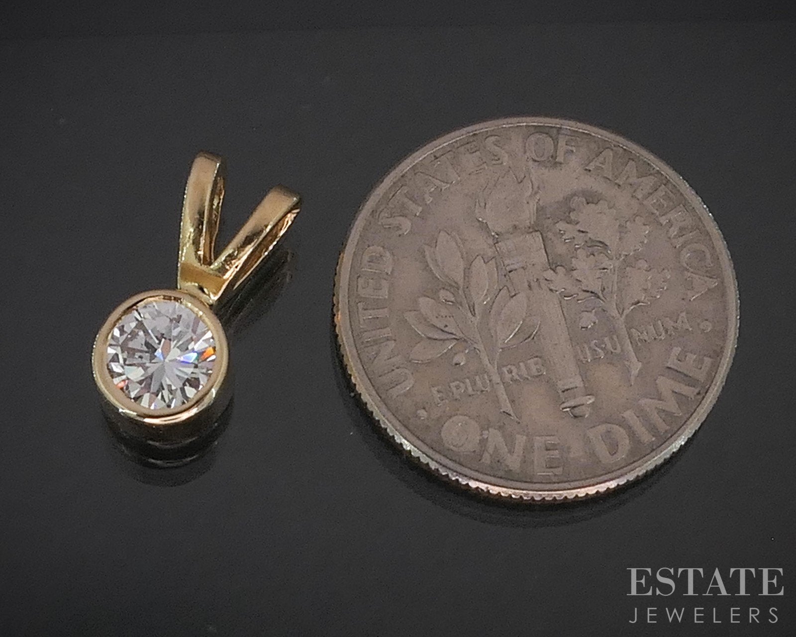 14k Yellow Gold Round Natural .38ct Diamond Solitaire Bezel Pendant i20116b