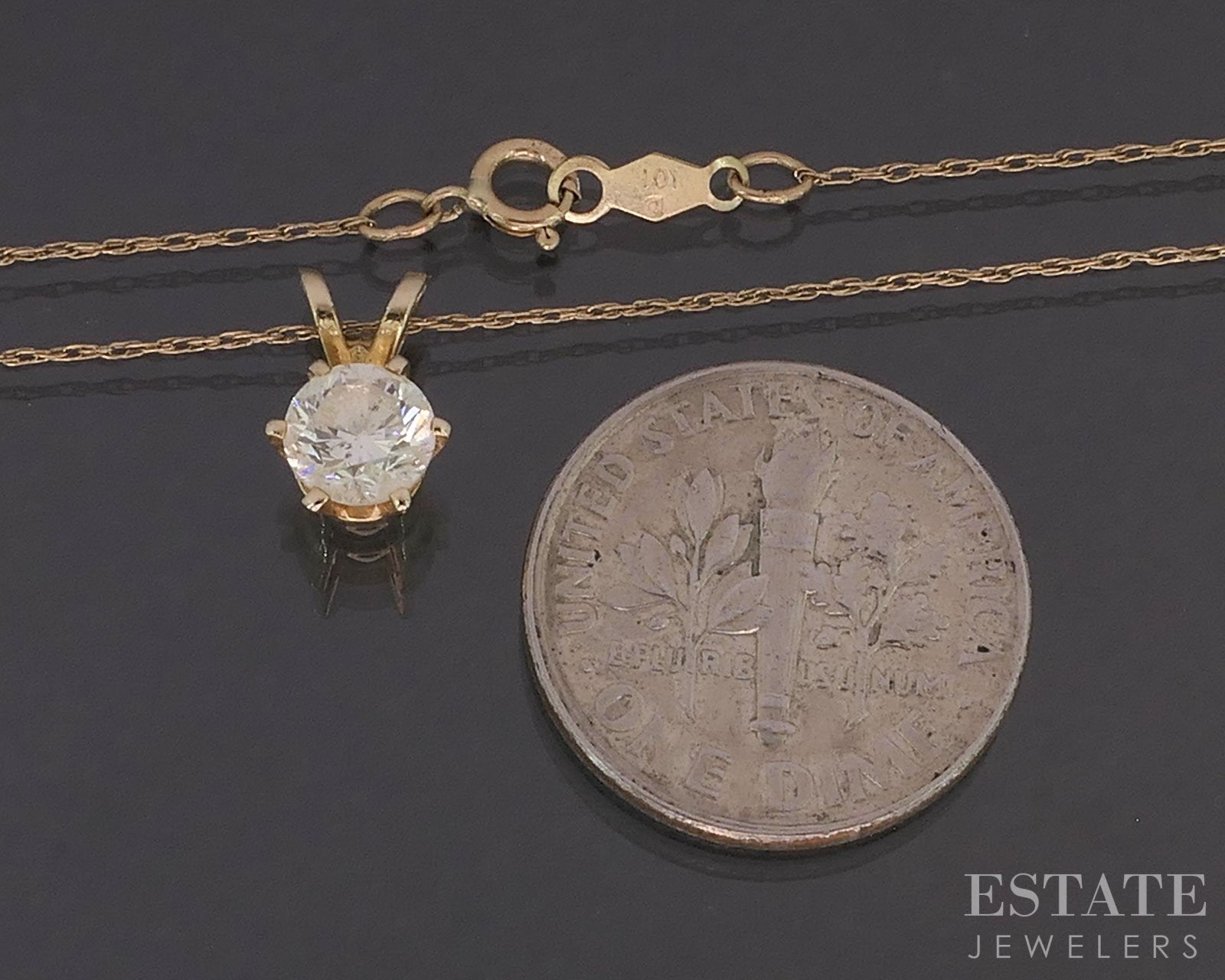 Additional Info: Everyday essential ladies necklace with a sparkling round cut prong set Diamond pendant attached to a dainty rope chain.