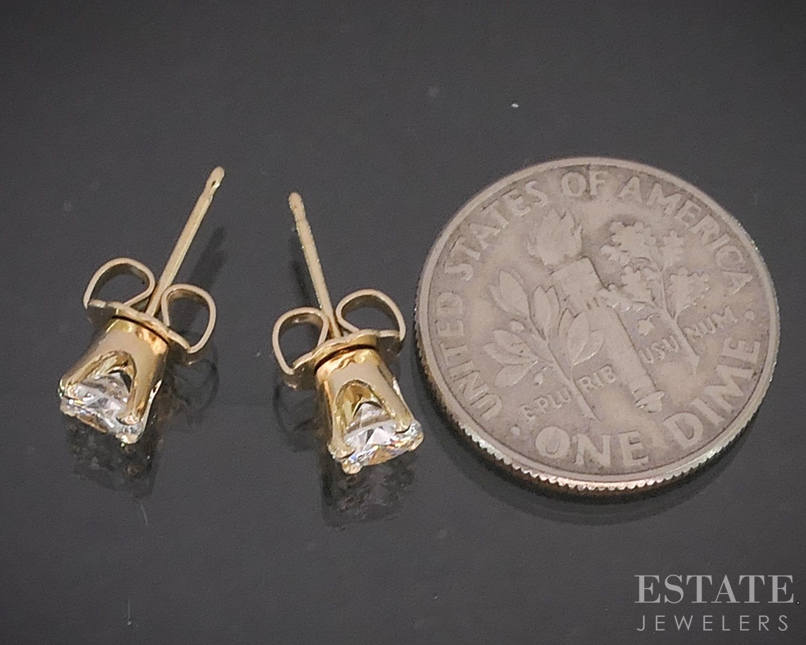 Additional Info: Add a touch of refined brilliance to your jewelry collection with these exquisite yellow gold Diamond studs. Each earring showcases a dazzling, hand-selected Diamond, expertly set in a classic 4-prong mountings.