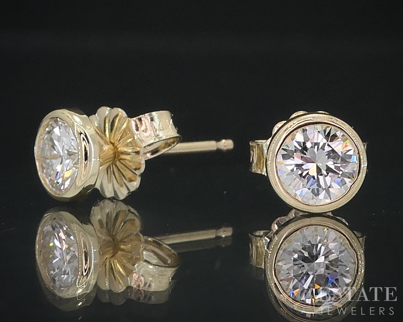 14k Yellow Gold Round Natural .62ctw Diamond Bezel Stud Earrings i18582