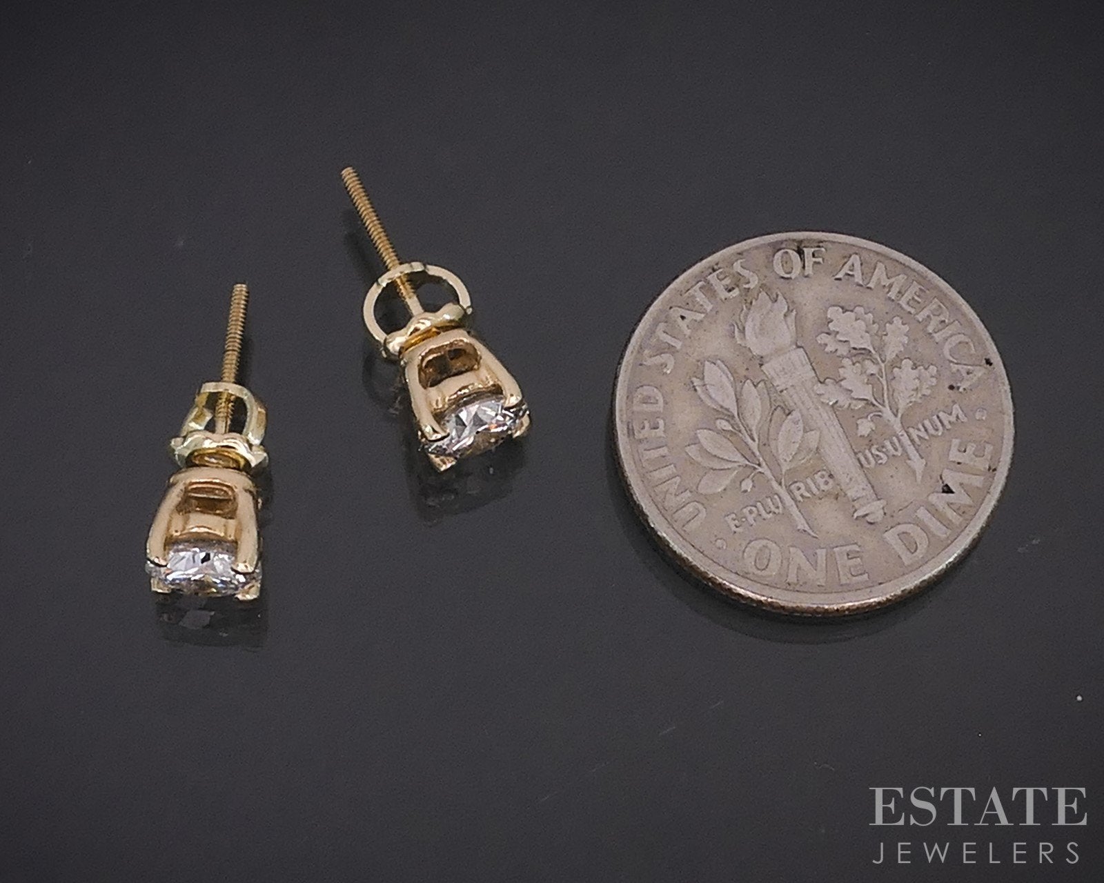14k Yellow Gold Round Natural .80ctw Diamond Screw Back Earrings i19116