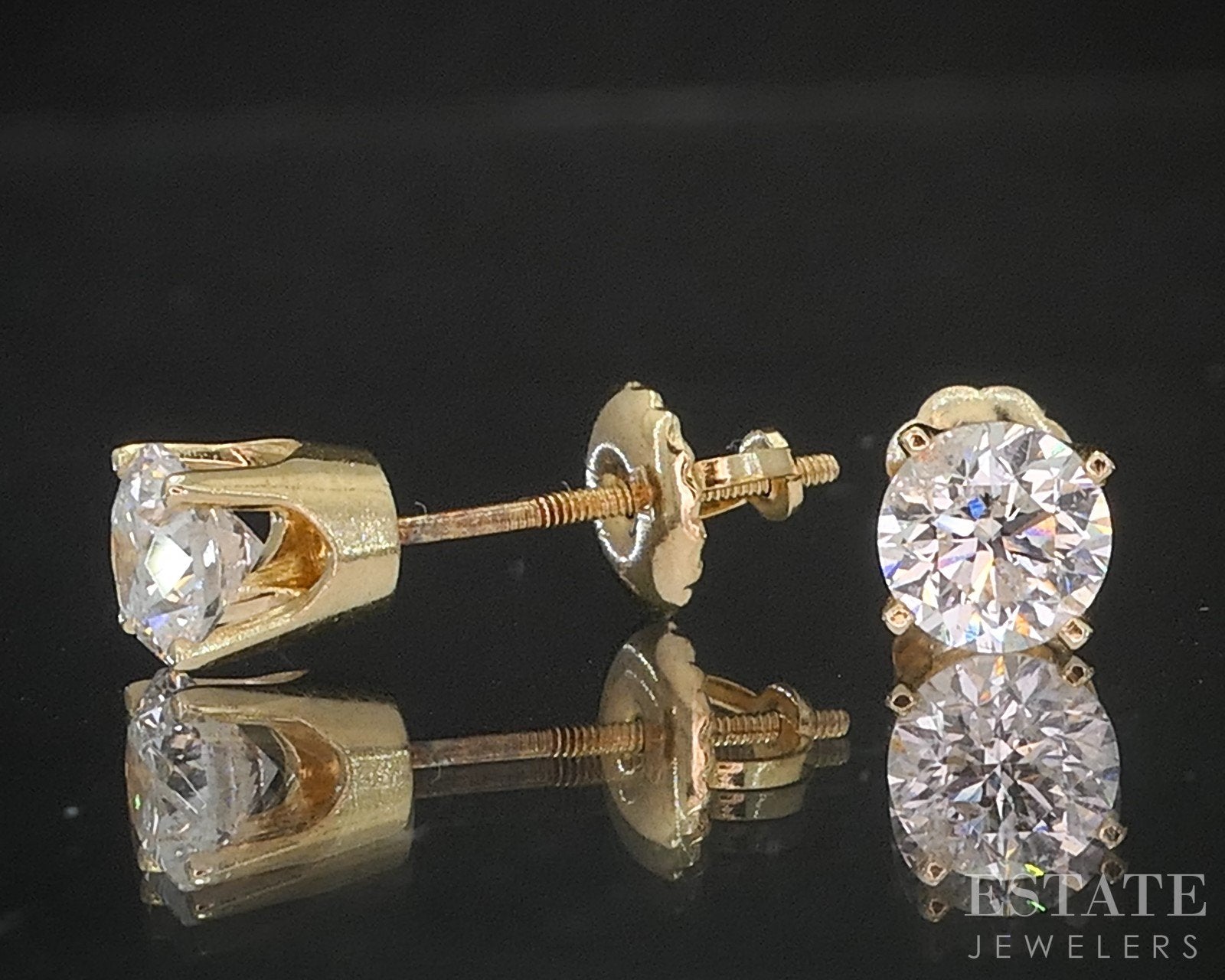 14k Yellow Gold Round Natural .84ctw Diamond Screw Back Earrings i20292