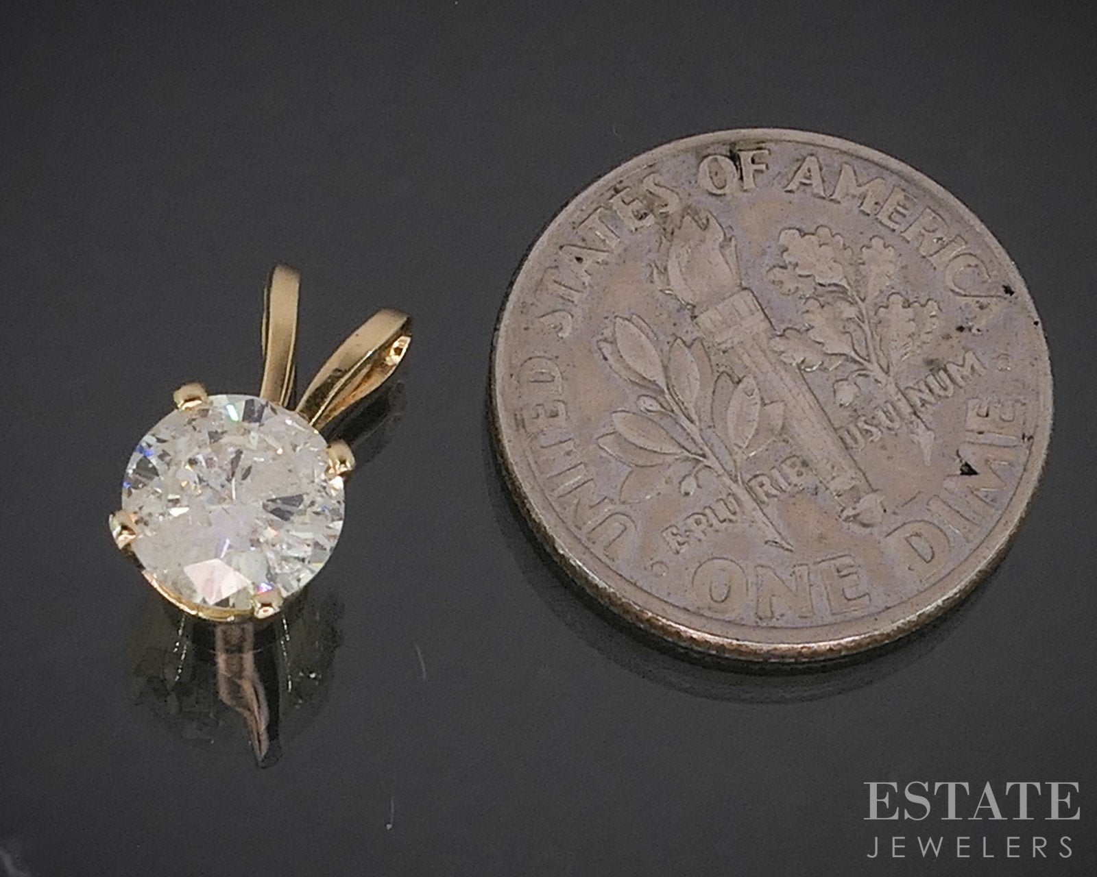 14k Yellow Gold Round Natural .95ct Diamond Solitaire Pendant i20337
