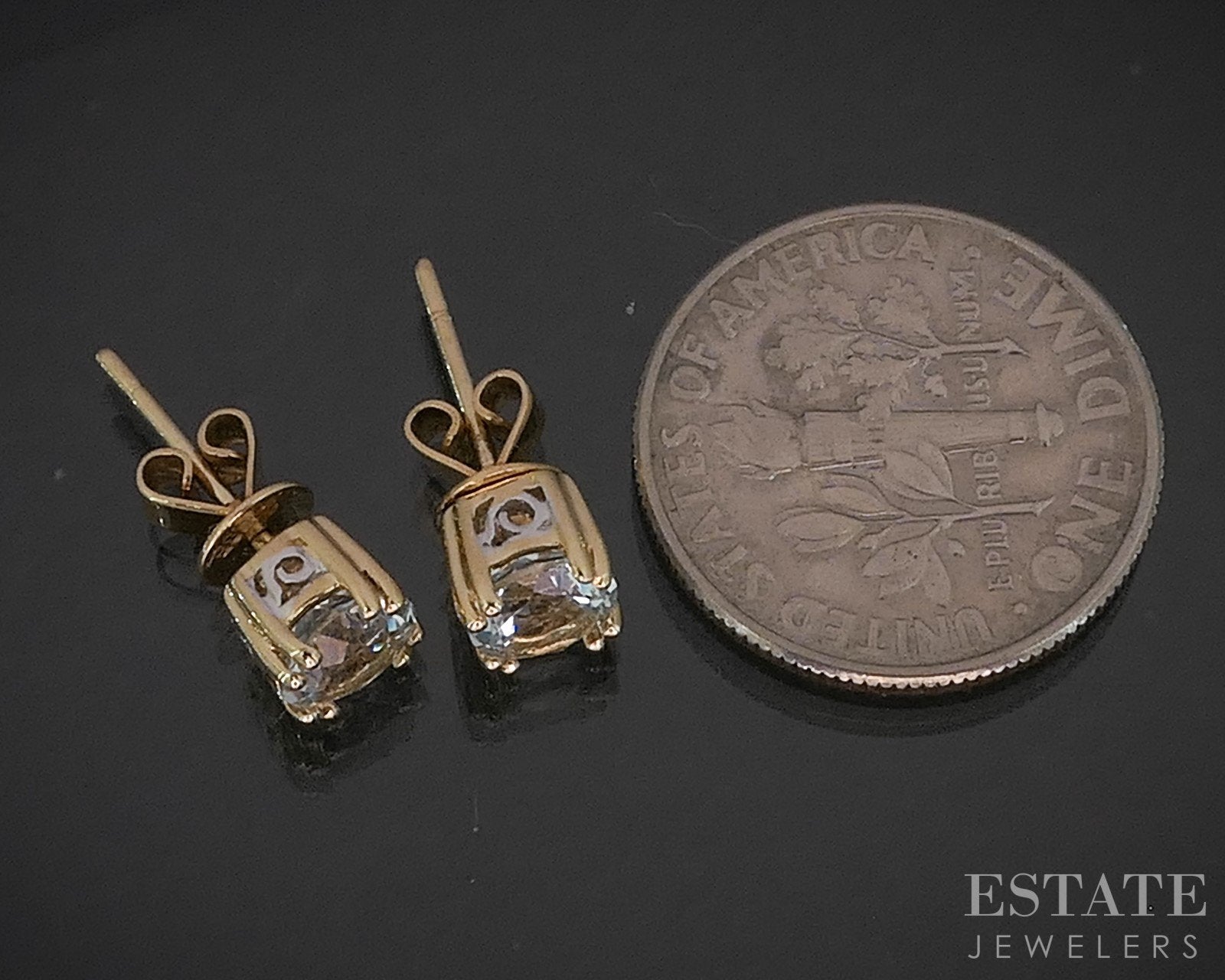 14k Yellow Gold Round Natural Aquamarine Stud Earrings 1.6g i20114b