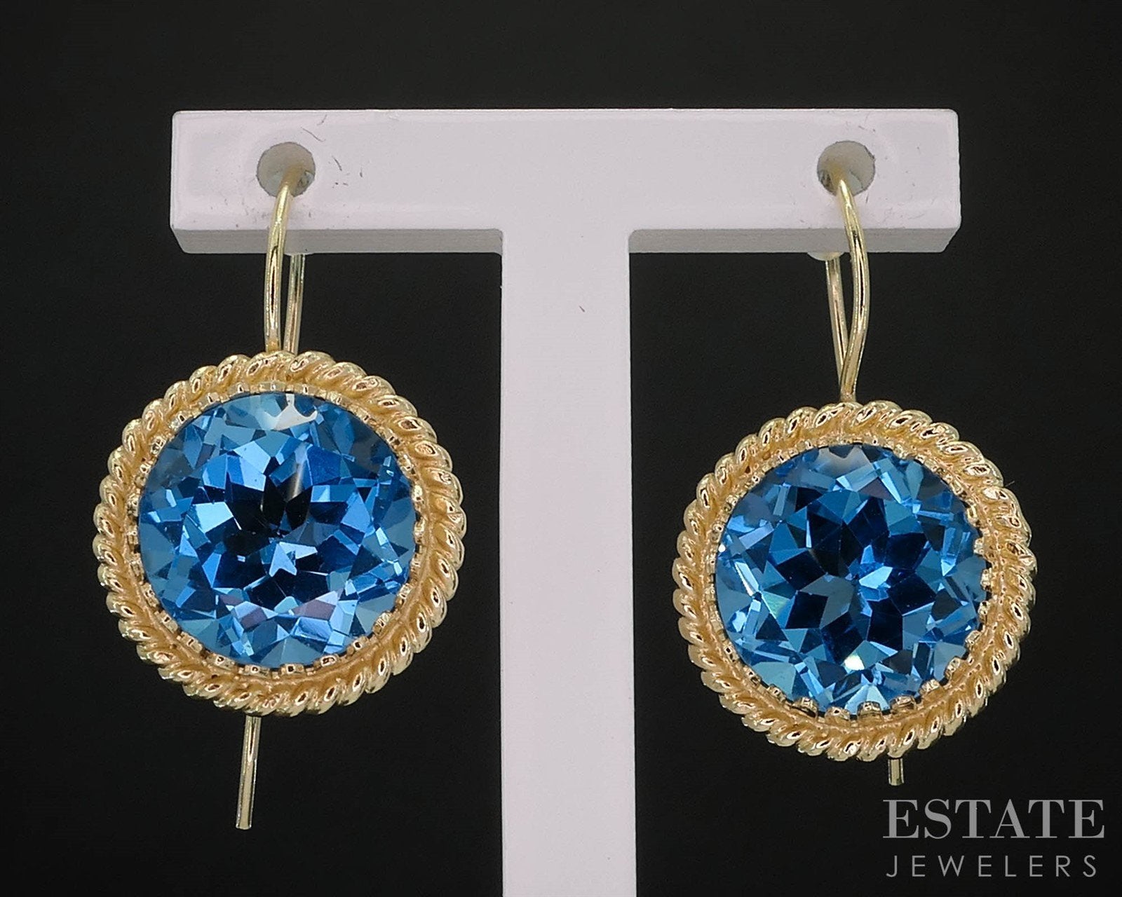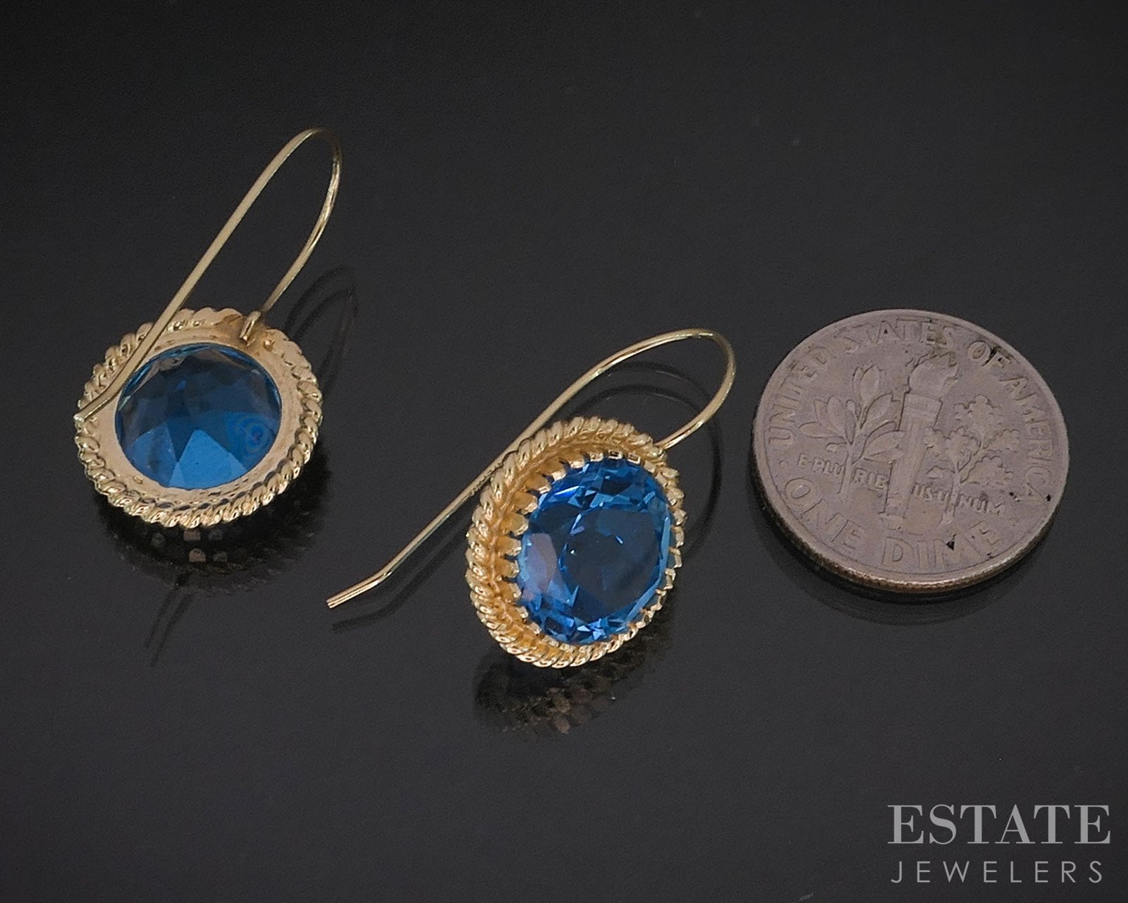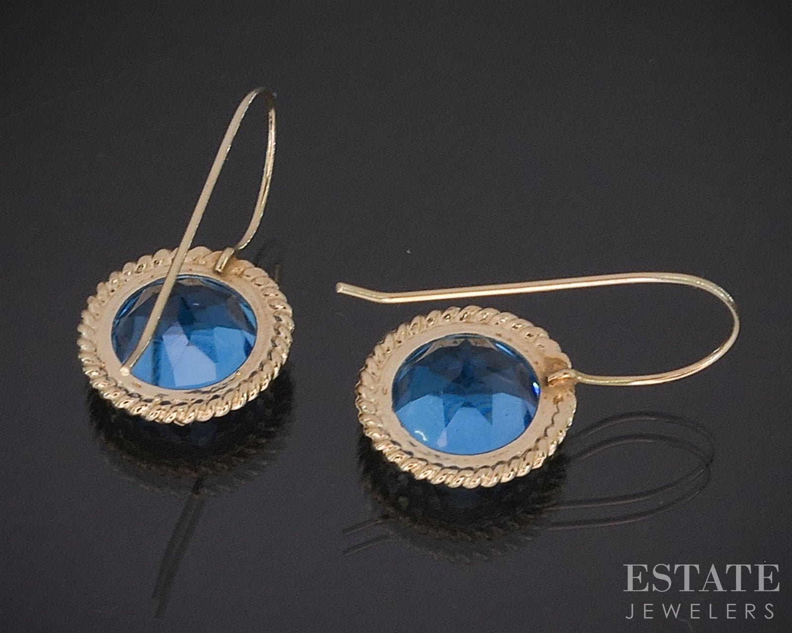 14k Yellow Gold Round Natural Blue Topaz Dangle Earrings 4.5g i19985b