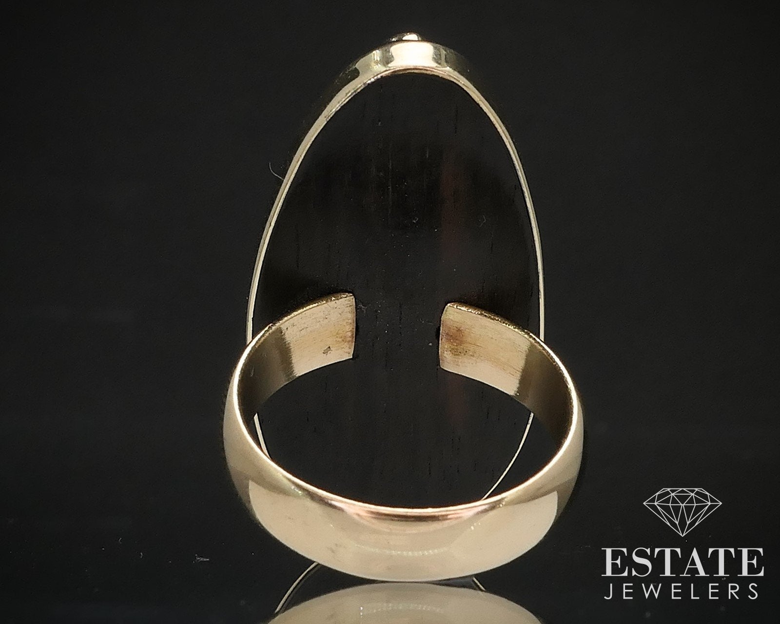 14k Yellow Gold Spiderweb Turquoise & Wood Signed Bear Navajo Ring 12g i16933