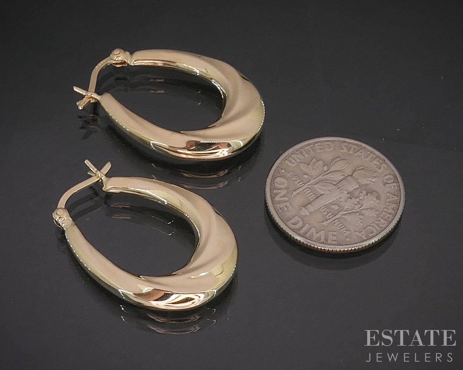 14k Yellow Gold Twisted Oval Hoop Ladies Earrings 2.1g i20364b