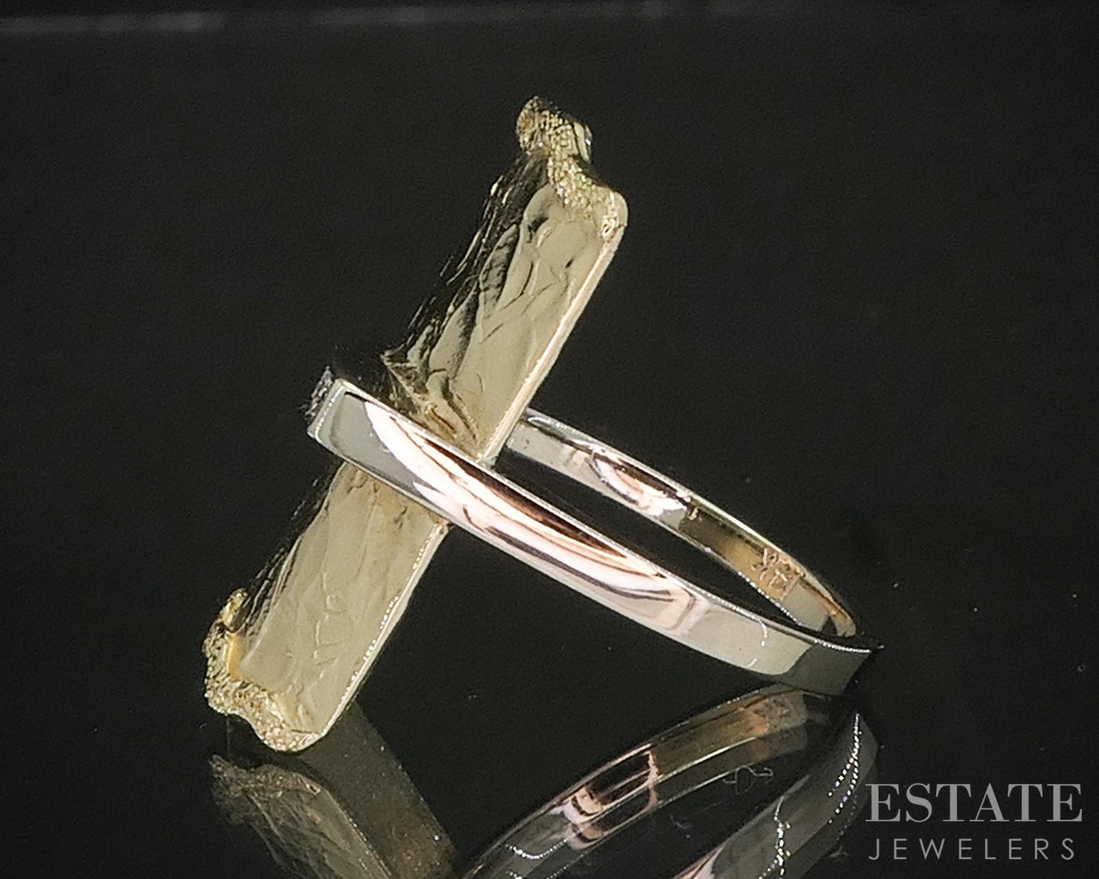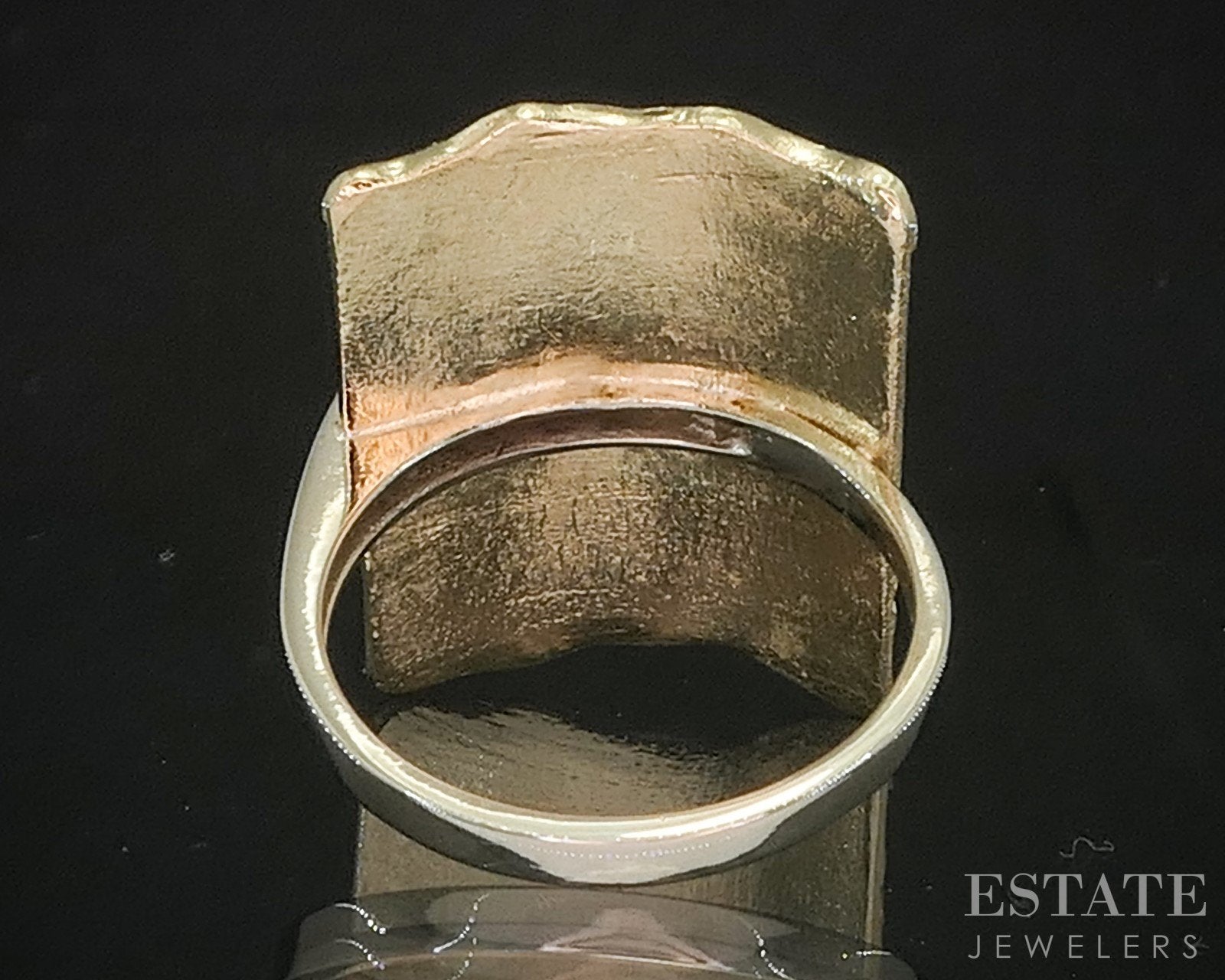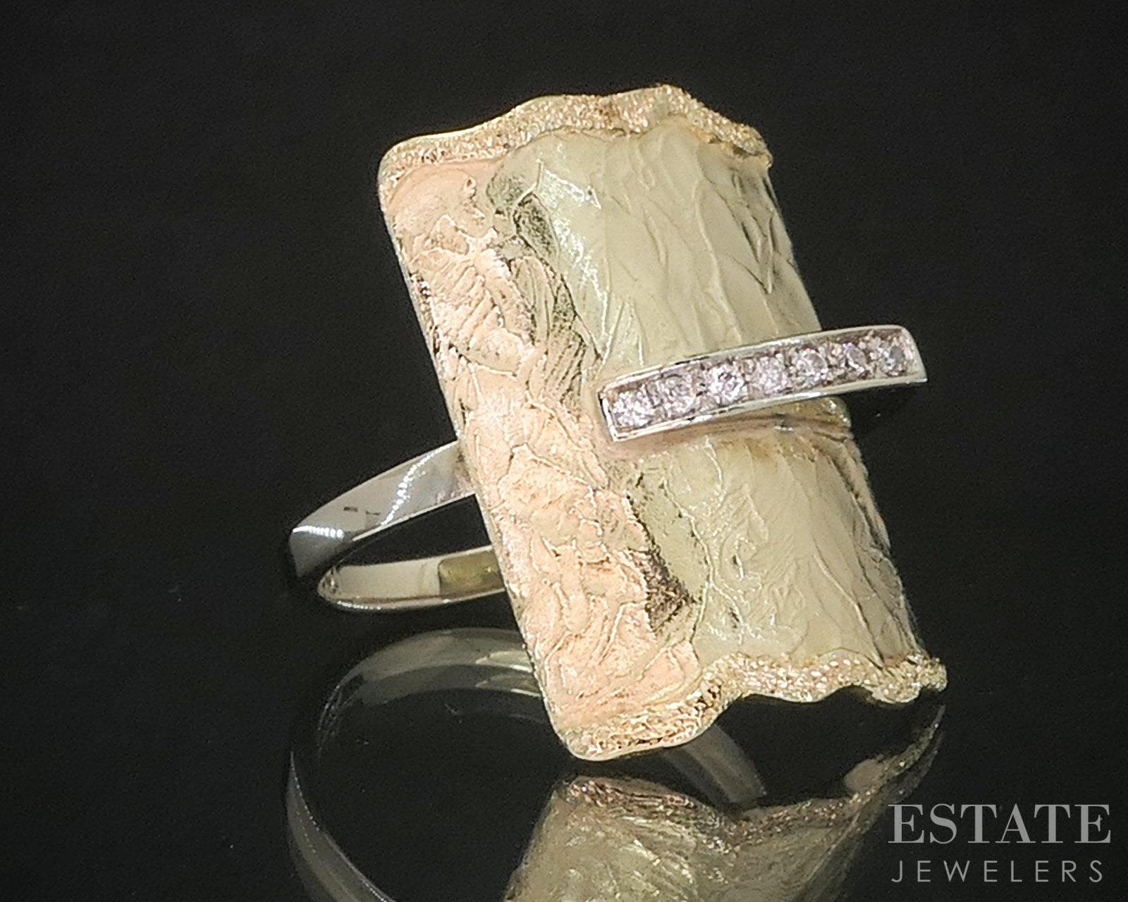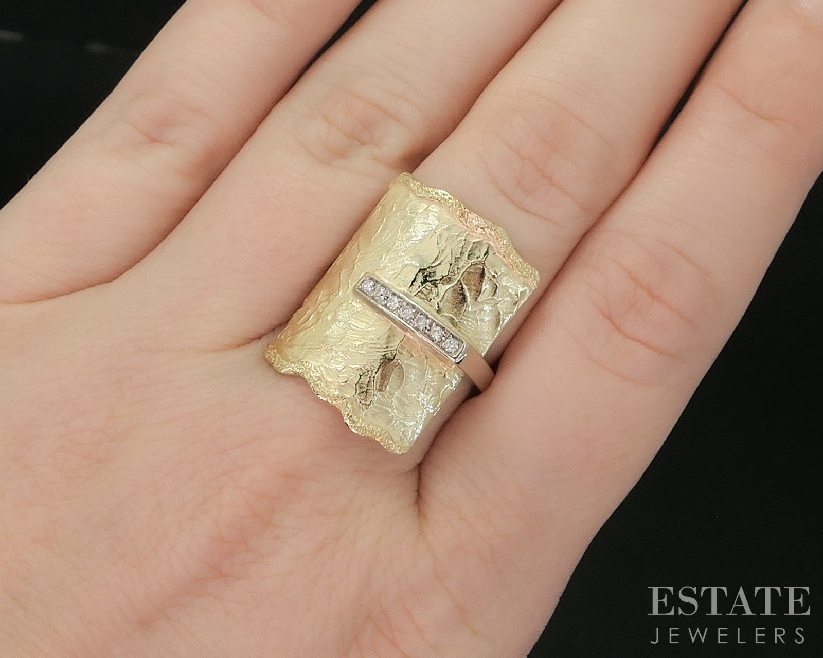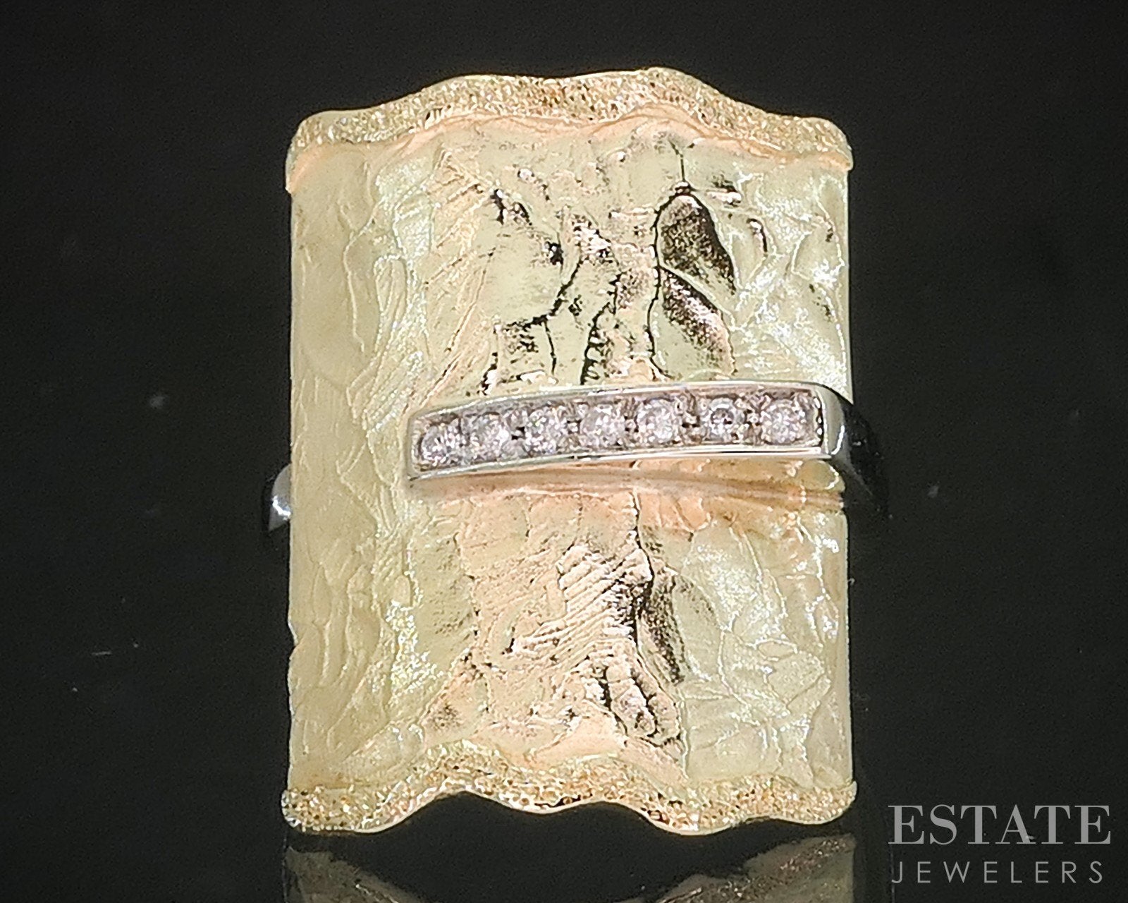 14k Yellow & White Gold Natural .07ctw Diamond Textured Shield Ring 6.9g i20333