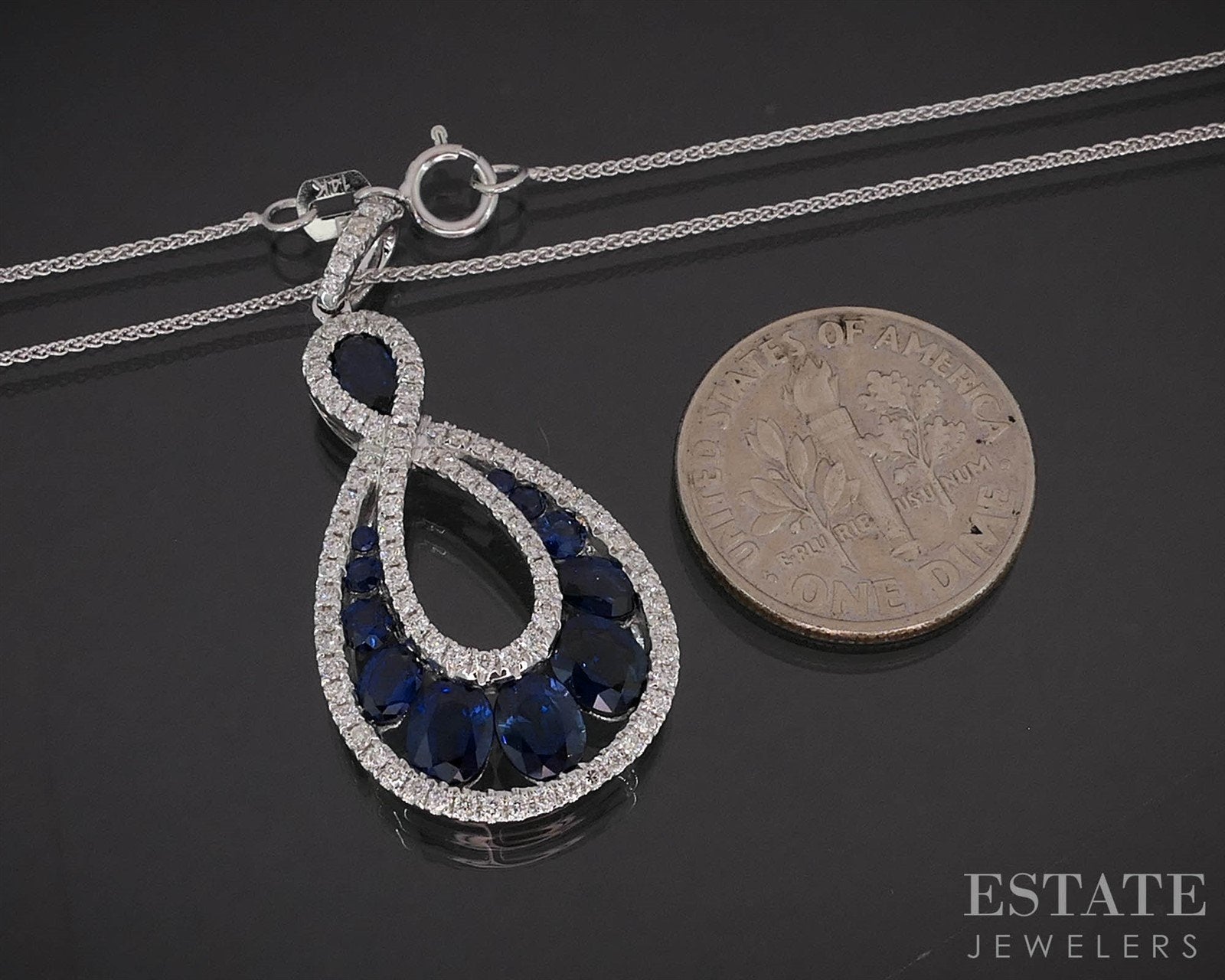18k/14k White Gold Natural Blue Sapphire & Diamond Necklace 5.1g 18"L i19869