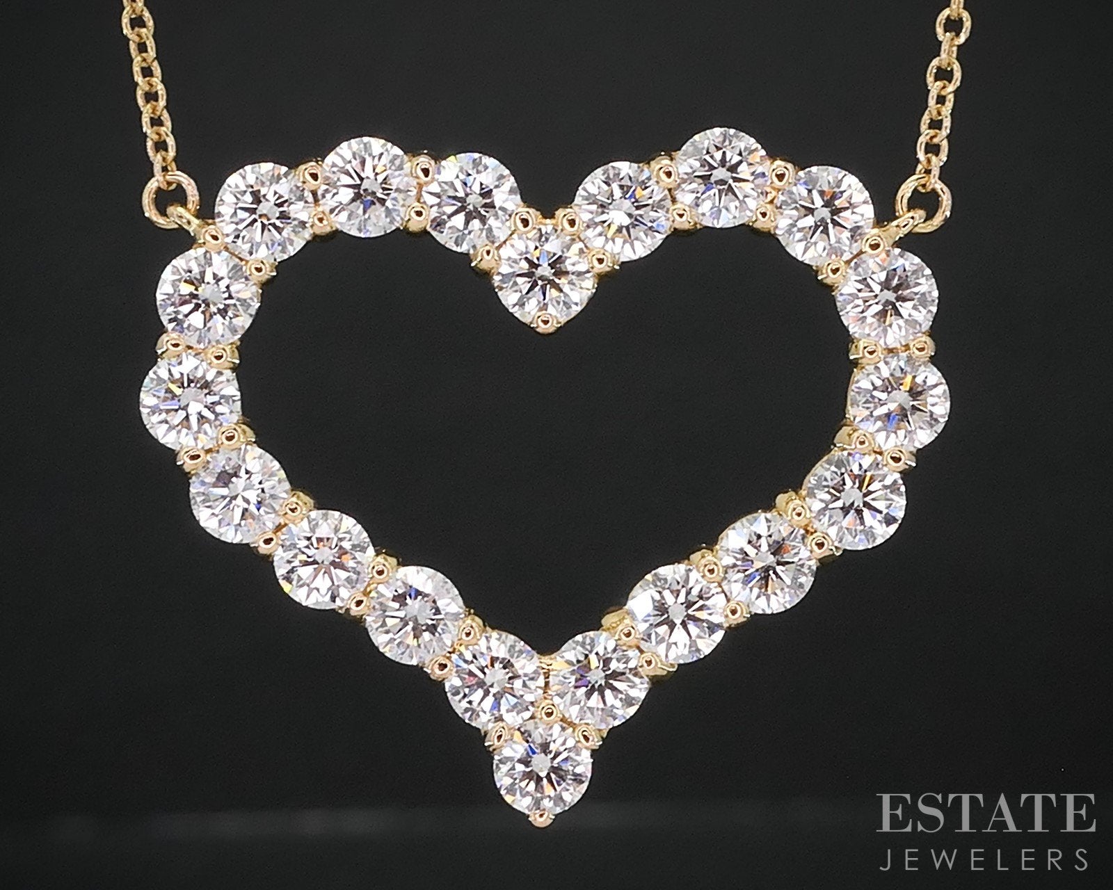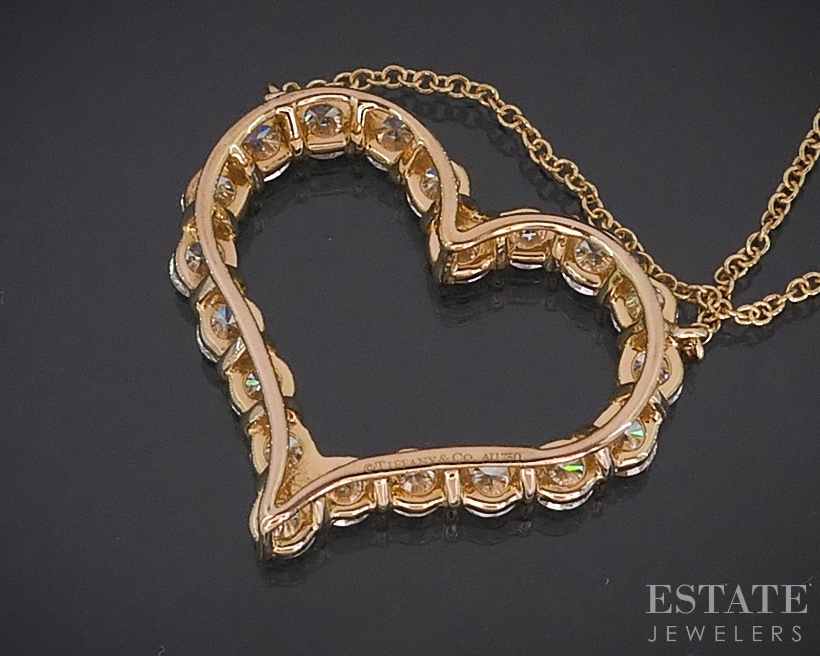 Additional Info: Radiating timeless elegance and refined romance, this Tiffany & Co. open heart necklace is crafted from 18k rose gold and adorned with brilliant round-cut diamonds. The iconic heart shaped pendant, an enduring symbol of love, is delicately suspended from a fine chain, designed to rest gracefully at the collarbone. Whether worn as an everyday statement or a cherished gift for a loved one, this exquisite piece captures the unmatched craftsmanship and sophistication that define Tiffany & Co. Comes with Tiffany box and scans of the original appraisal done by Tiffany itself!
