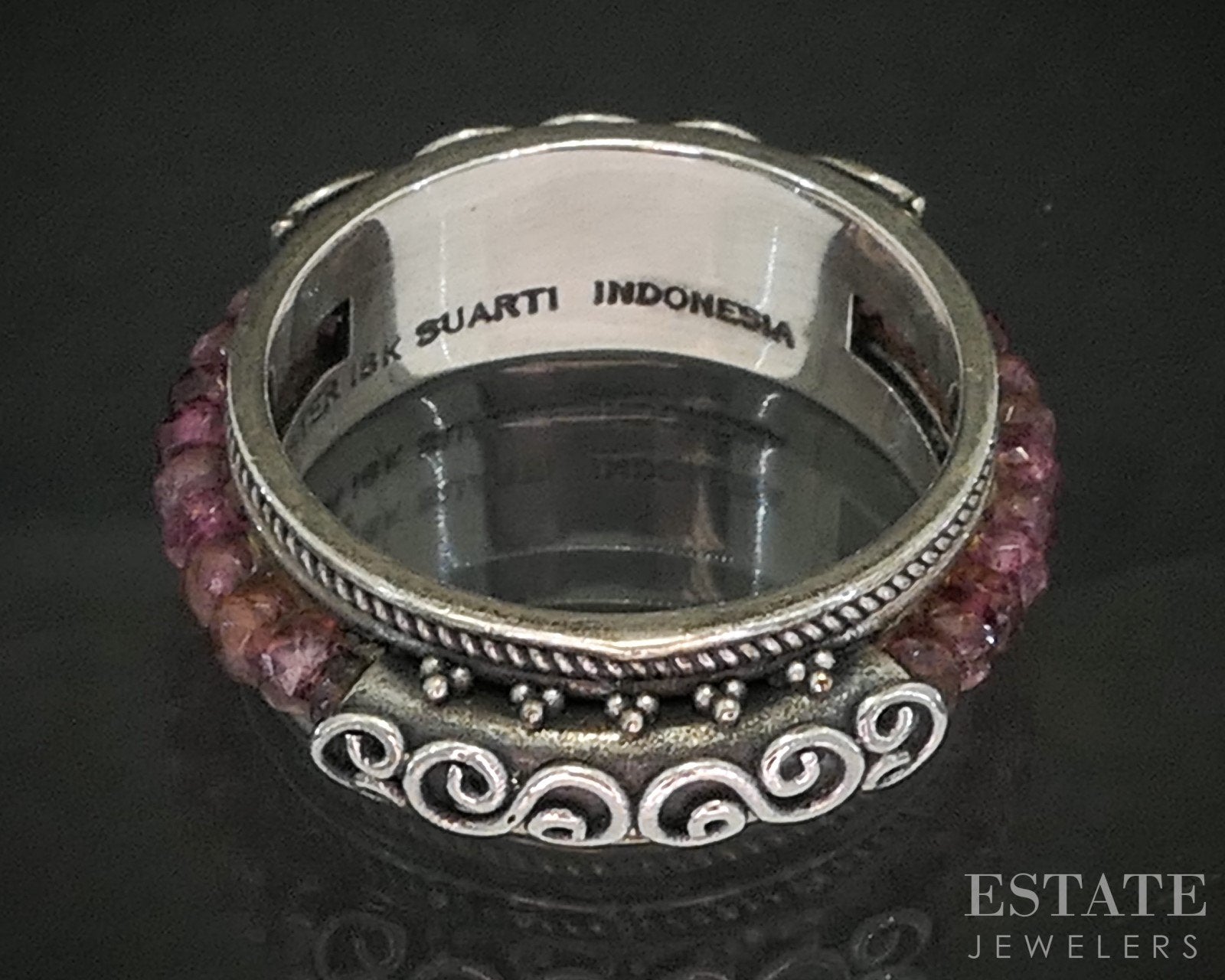 18k & Sterling BA Bali Suarti Rhodolite Garnet Stacked Band Ring 6.8g p18999