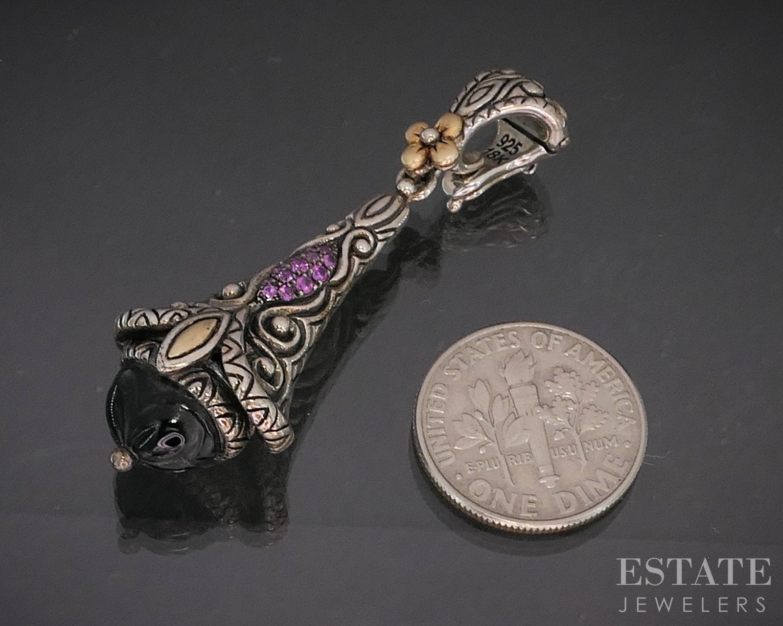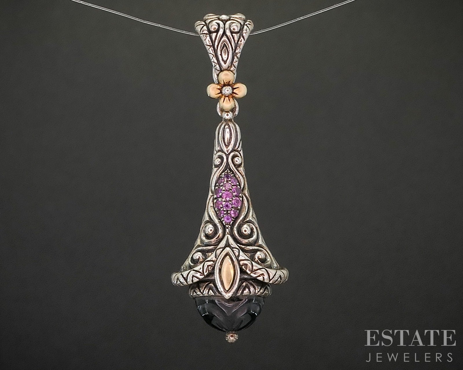 18k & Sterling Barbara Bixby Black Onyx Pink Sapphire Teardrop Pendant 8g p19883