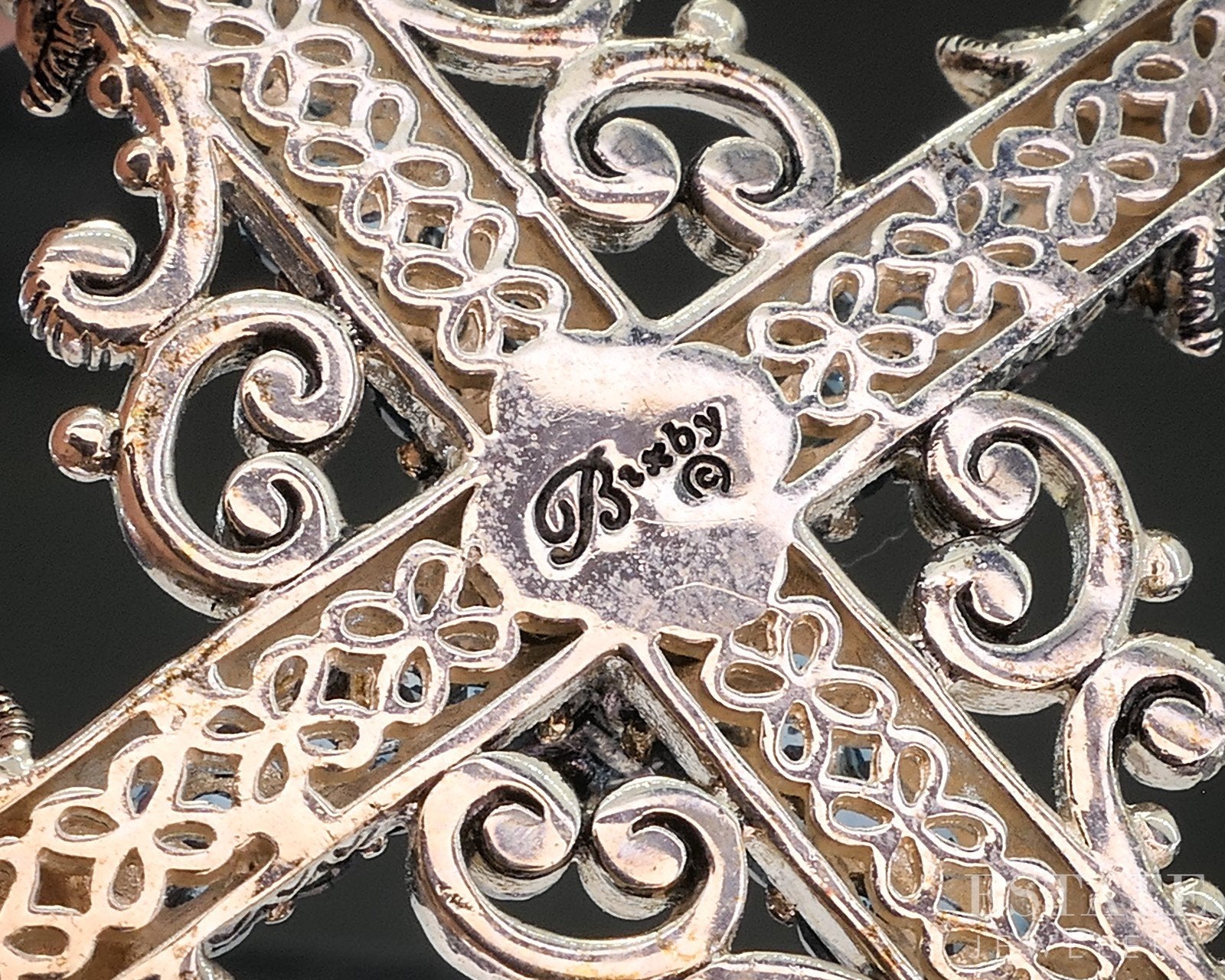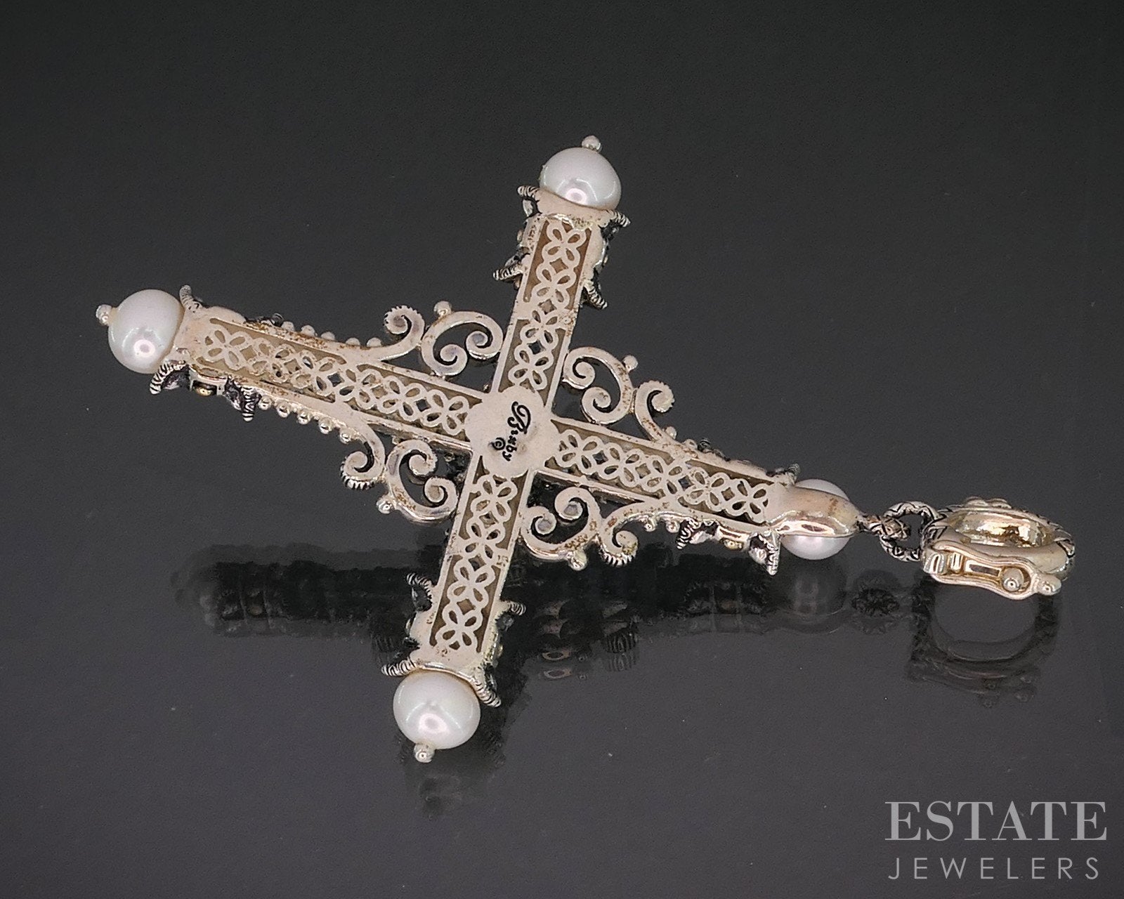 18k & Sterling Barbara Bixby London Blue Topaz Pearl Cross Pendant 17.1g p18665